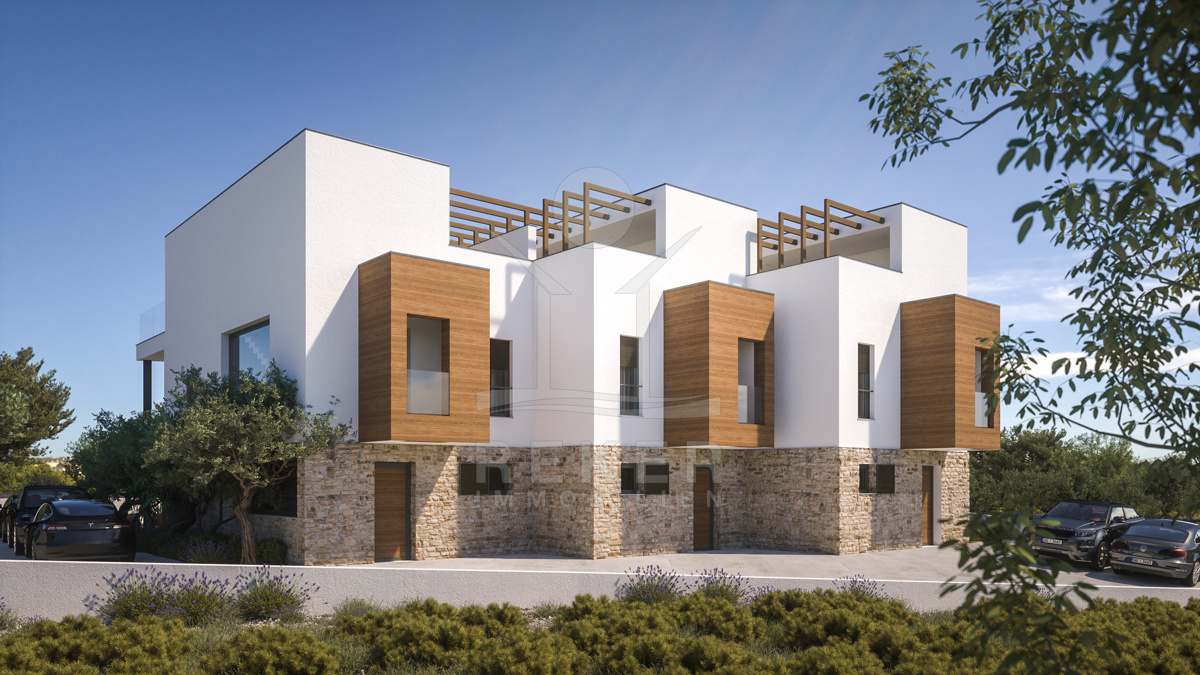 Das Reihenhaus wurde in moderner Architektur entworfen und erstreckt sich über drei Etagen mit einer Gesamtfläche von 142 m². Der Bauzustand ist ein Neubau, der voraussichtlich im Sommer 2024 fertiggestellt wird. Die Terrasse ist ein Highlight des Hauses und verfügt über einen Swimmingpool. Der Bereich ist teilweise gepflastert und teilweise mit einem Garten mit mediterranen Pflanzen gestaltet, was für eine angenehme und entspannte Atmosphäre sorgt. Zur Beckenausstattung gehören Gegenstromanlage, Beckenbeleuchtung, isotherme Abdeckung mit Wickelständer, Vorbereitung für Wärmepumpe und automatische Dosierung von Chemikalien zur Aufbereitung des Beckenwassers. Die Gesamtfläche des Gartens beträgt 40-50 m², die des Pools 12 m². Zur Wohnung gehört ein Parkplatz im Hof, der Rest des Hofes hinter dem Haus ist Gemeinschaftsfläche.