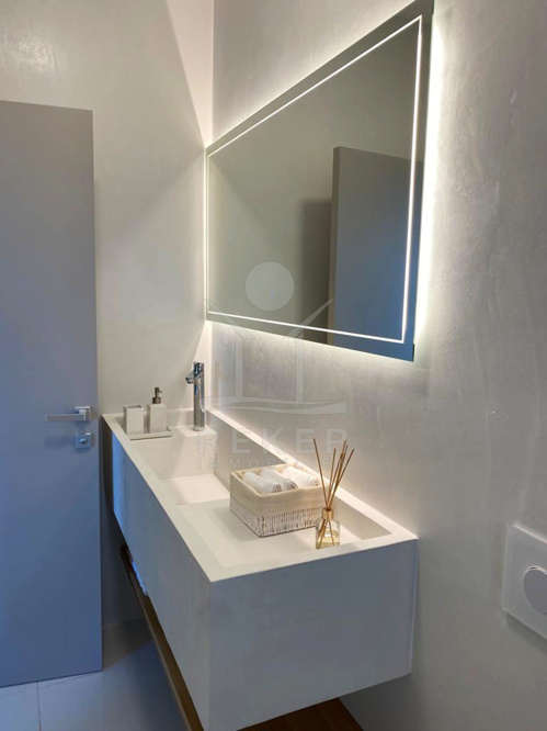 Die exquisite Wohnung besticht durch ihre hochwertige Bauweise und stilvolle Designermöbel. Die Küchen sowie die Waschküche sind mit hochwertigen Miele-Geräten ausgestattet, die Funktionalität und Eleganz vereinen. Das Erdgeschoss bietet eine großzügige Garage, einen Heizraum sowie einen Flur und eine Waschküche. Zwei Schlafzimmer mit en Suite Badezimmern ermöglichen privaten Rückzugsraum, während der Wohnbereich mit integrierter Küche und Essbereich direkten Zugang zu einer großzügigen Terrasse bietet.