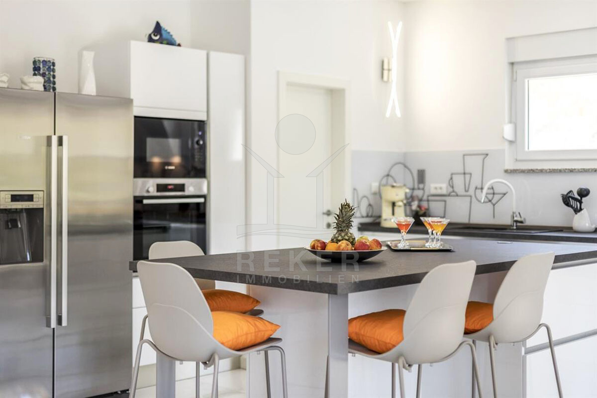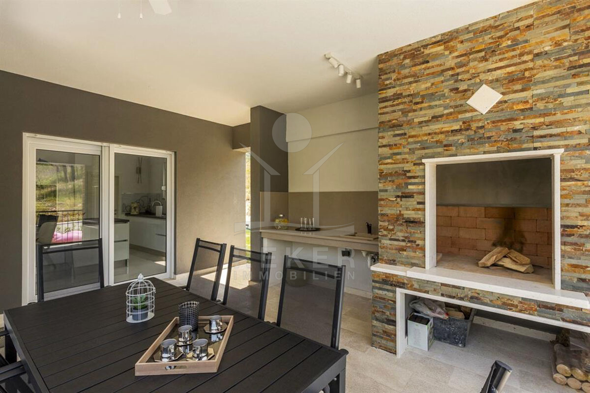 Die Außenanlage dieser Villa ist ein wahrer Traum, die sowohl eine großzügige Terrasse als auch einen wunderbaren Pool und eine erfrischende Außendusche umfasst. Hier finden Sie ausreichend Liegeplätze, um das Nichts-tun oder entspannende Stunden in der Sonne zu genießen. Die zusätzlich integrierte Outdoor-Küche mit Außenkamin lädt dazu ein, das Leben im Freien zu feiern und unvergessliche Momente mit Familie und Freunden zu schaffen. Diese luxuriöse Außenanlage ist der perfekte Ort, um die warmen Monate in vollen Zügen auszukosten.