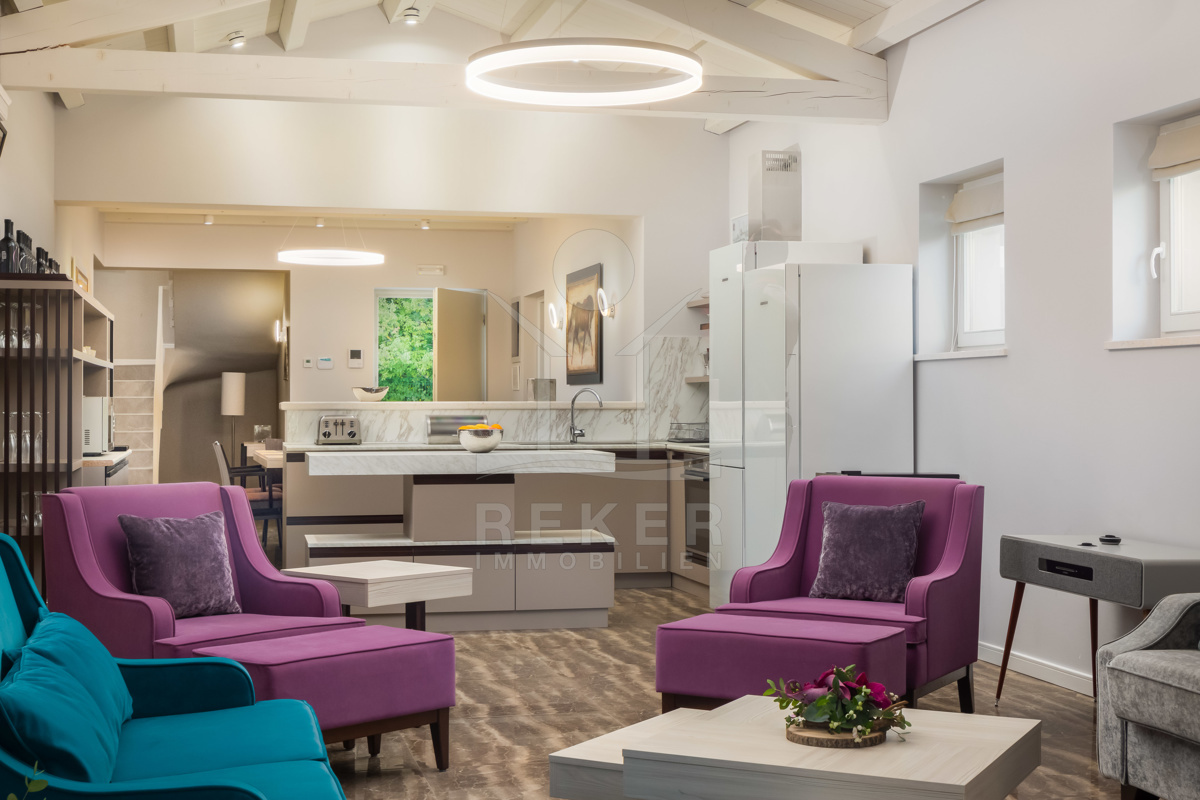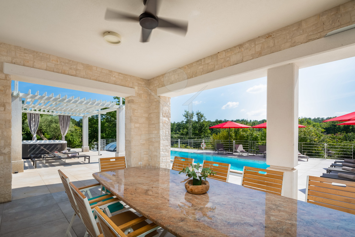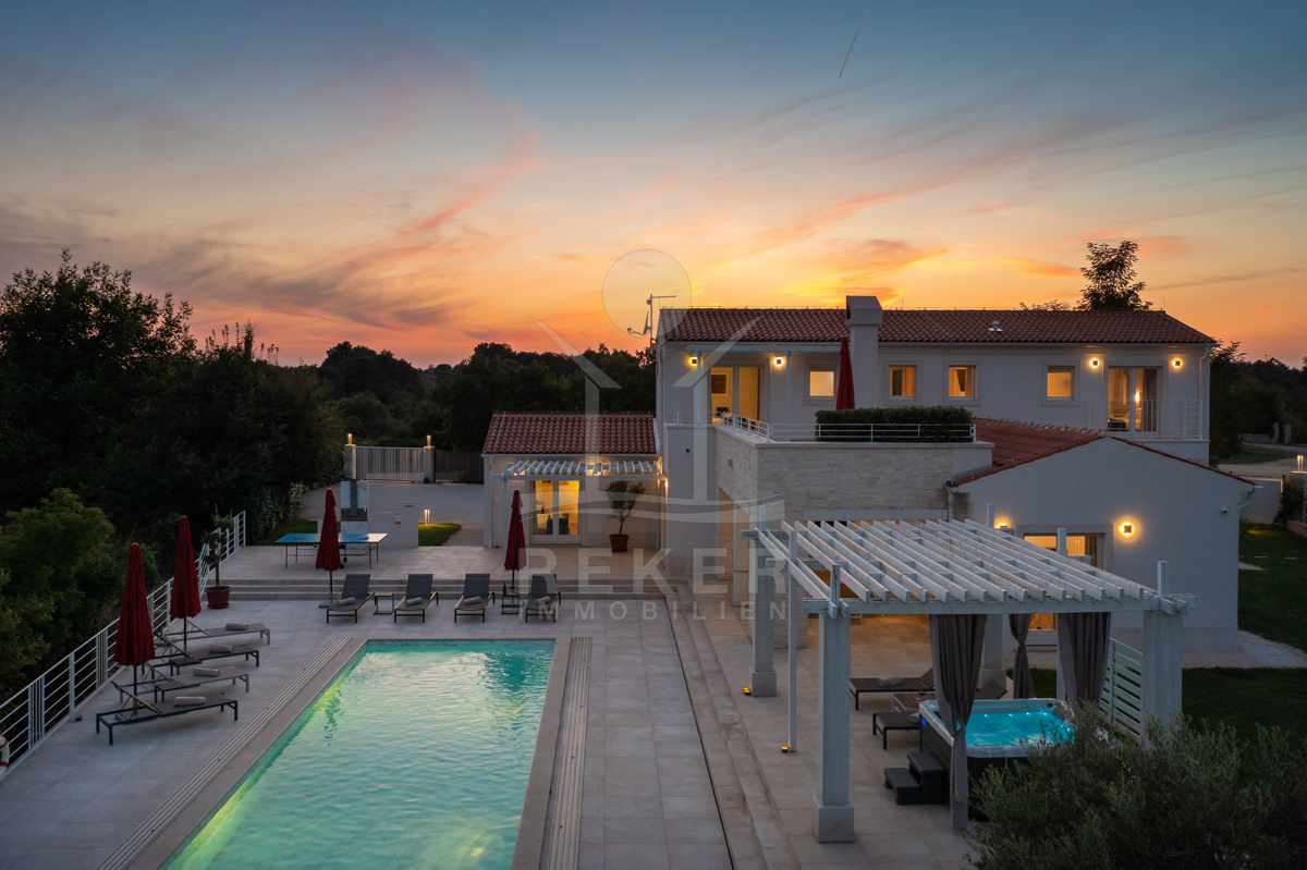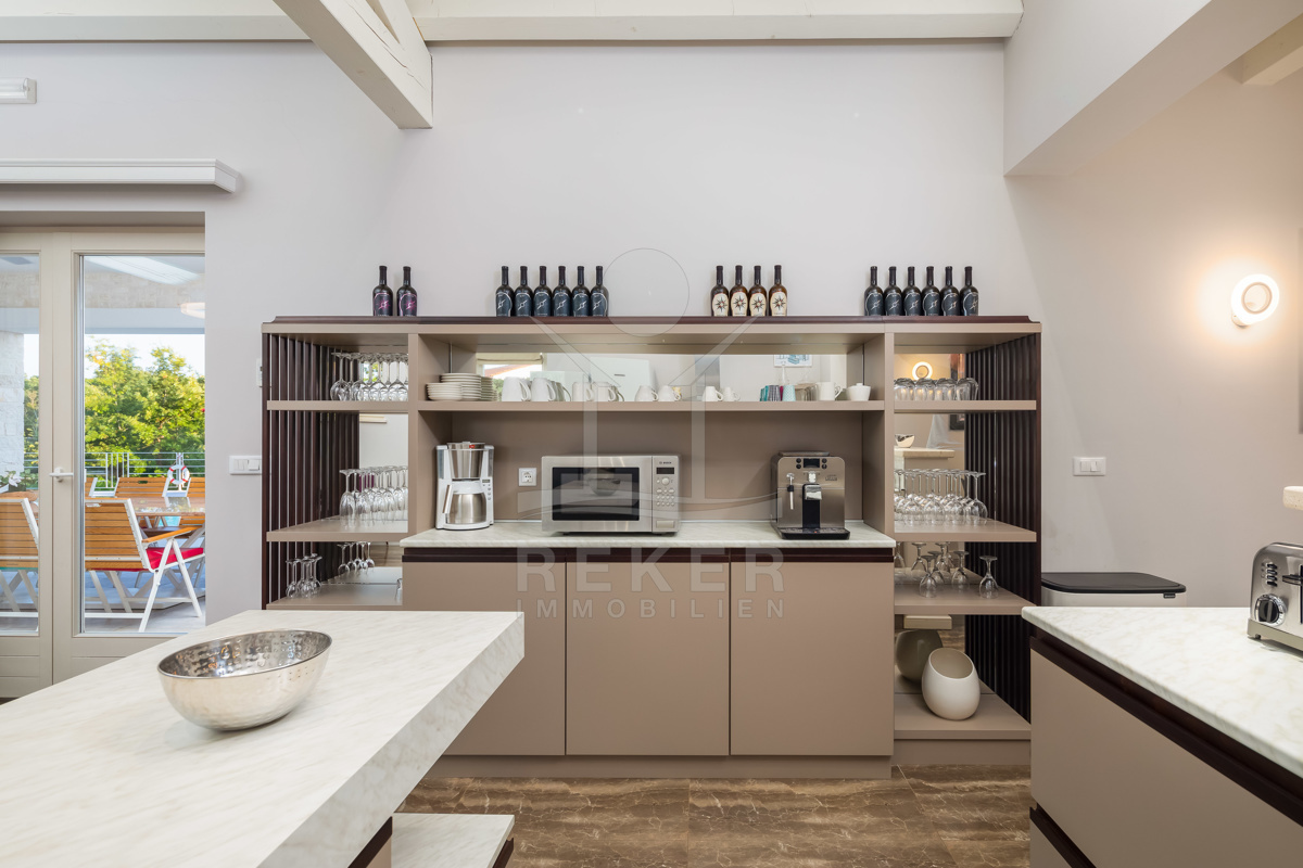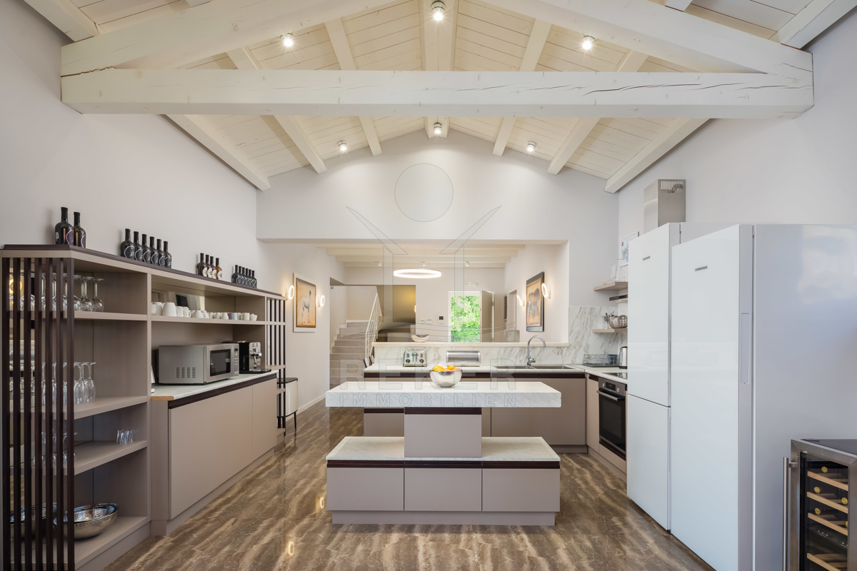 Die Luxusvilla der Extraklasse befindet sich in Režanci, einer malerischen istrischen Gemeinde in der Nähe der mittelalterlichen Stadt Svetvinčenat. Umgeben von einer friedlichen ländlichen Umgebung, genießen Sie hier Ruhe und Erholung pur. In nur 22 Autominuten erreichen Sie das pulsierende Pula, wo Sie das antike Amphitheater besichtigen oder die charmante Altstadt erkunden können. Für einen entspannten Tag am Strand bieten sich der Strand von Rabac oder der Hafen von Rovinj an, die beide in kurzer Fahrzeit erreichbar sind. Istrien ist für seine vielfältigen Strände, erstklassigen Weine und authentische Küche bekannt, die Ihren Aufenthalt unvergesslich machen. Die gute Infrastruktur und die Nähe zu europäischen Nachbarländern machen Istrien zur beliebten Urlaubsregion Kroatiens. Erleben Sie die Schönheit und Vielfalt von Istrien, angefangen bei kristallklarem Wasser über idyllische Küstenstädte bis hin zur herzlichen Gastfreundschaft der Einheimischen. Ob Kultur, Sehenswürdigkeiten, Wassersport oder Wanderungen - hier gibt es für jeden etwas zu entdecken und Langeweile kommt garantiert nicht auf.