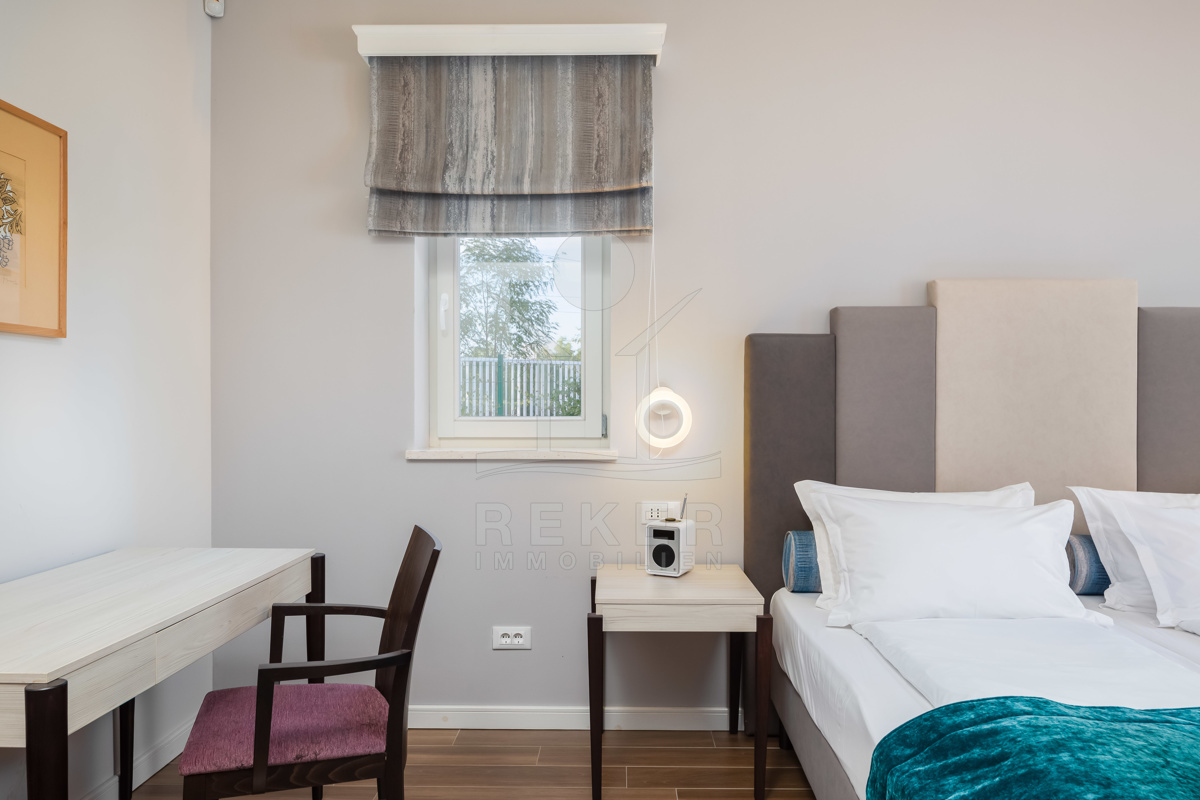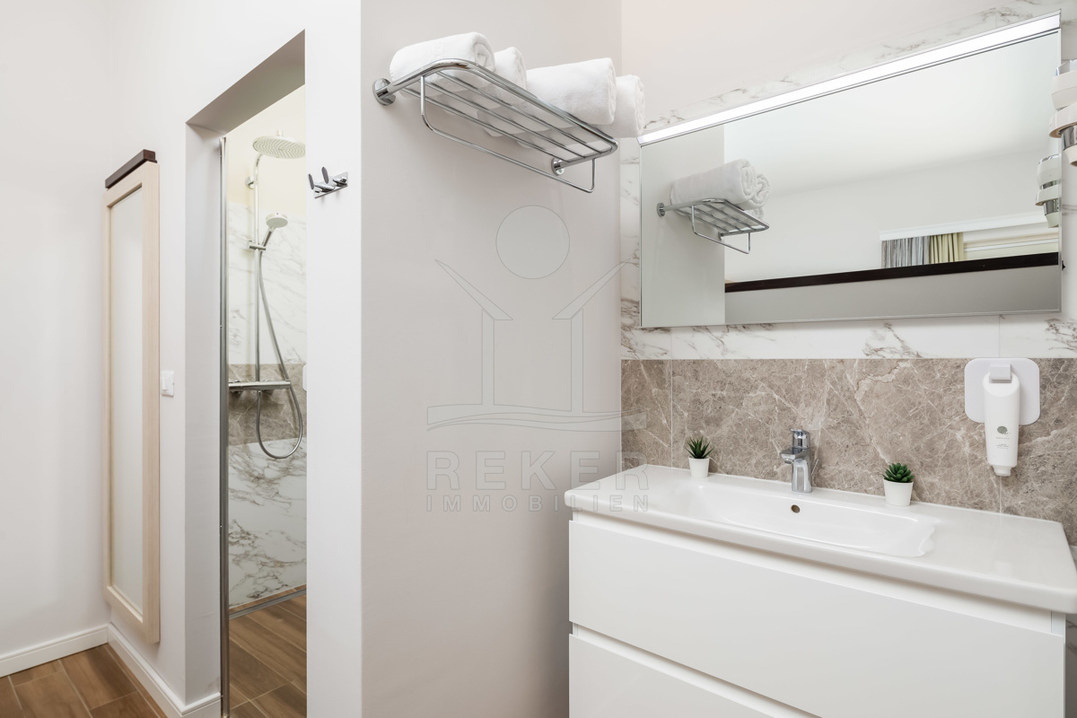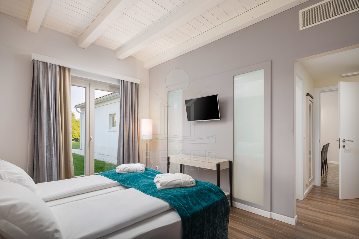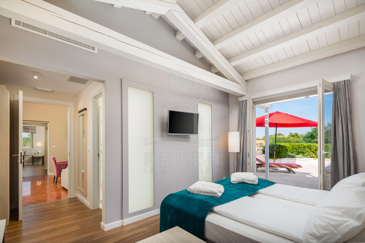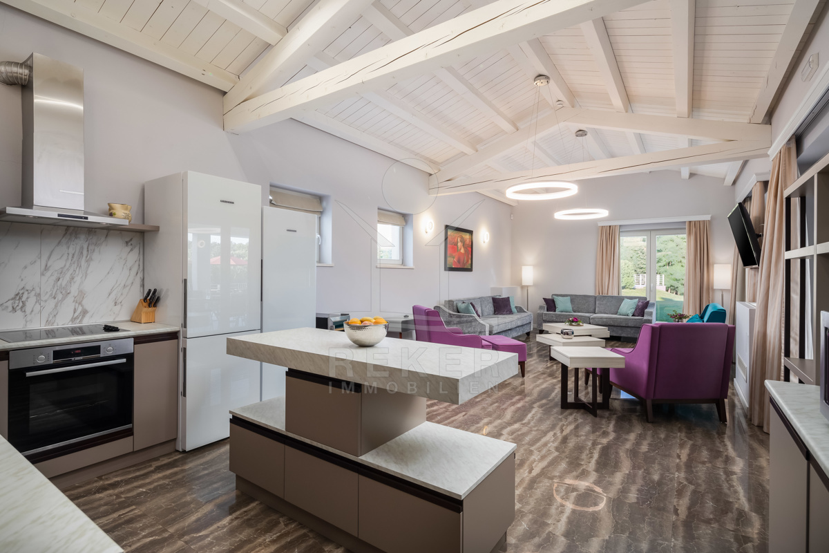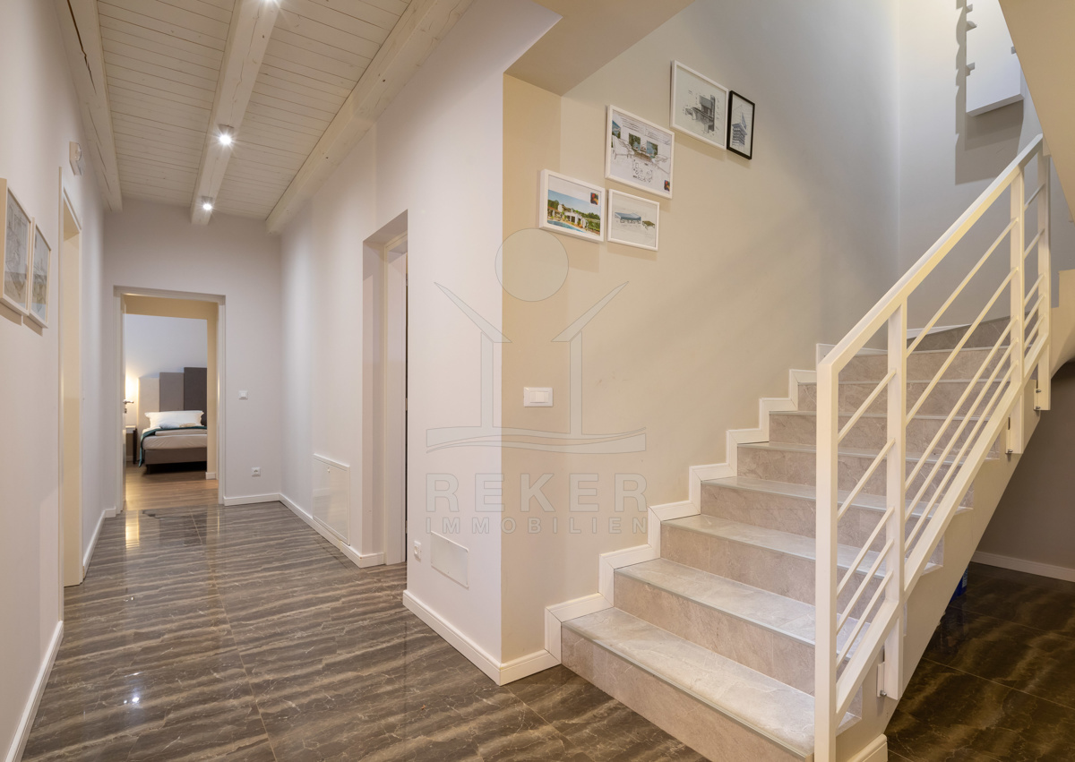 Die Luxusvilla der Extraklasse befindet sich in Režanci, einer malerischen istrischen Gemeinde in der Nähe der mittelalterlichen Stadt Svetvinčenat. Umgeben von einer friedlichen ländlichen Umgebung, genießen Sie hier Ruhe und Erholung pur. In nur 22 Autominuten erreichen Sie das pulsierende Pula, wo Sie das antike Amphitheater besichtigen oder die charmante Altstadt erkunden können. Für einen entspannten Tag am Strand bieten sich der Strand von Rabac oder der Hafen von Rovinj an, die beide in kurzer Fahrzeit erreichbar sind. Istrien ist für seine vielfältigen Strände, erstklassigen Weine und authentische Küche bekannt, die Ihren Aufenthalt unvergesslich machen. Die gute Infrastruktur und die Nähe zu europäischen Nachbarländern machen Istrien zur beliebten Urlaubsregion Kroatiens. Erleben Sie die Schönheit und Vielfalt von Istrien, angefangen bei kristallklarem Wasser über idyllische Küstenstädte bis hin zur herzlichen Gastfreundschaft der Einheimischen. Ob Kultur, Sehenswürdigkeiten, Wassersport oder Wanderungen - hier gibt es für jeden etwas zu entdecken und Langeweile kommt garantiert nicht auf.