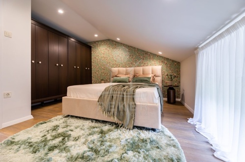 Im ersten Stock finden Sie zwei Schlafzimmer, einen Flur, ein Badezimmer, eine Toilette sowie eine 4,90 m² große Terrasse. Die Mansarde besticht mit einem geräumigen Schlafzimmer, einem Flur, einem Bad und einer 11 m² großen Terrasse.