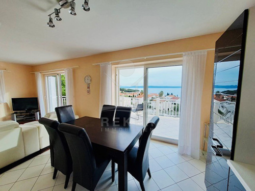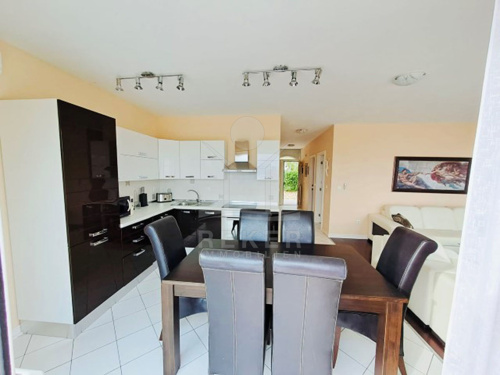 Im 1. Stock erwartet Sie eine weitere geräumige Wohnung mit ebenfalls einer modernen Küche und einem hellen Wohnzimmer. Hier befinden sich 2 Schlafzimmer, jedes mit eigenem Badezimmer. Von der Küche und dem Wohnzimmer aus gelangen Sie auf eine großzügige Terrasse/Balkon, wo Sie den spektakulären Blick auf das Meer und die Stadt genießen können.