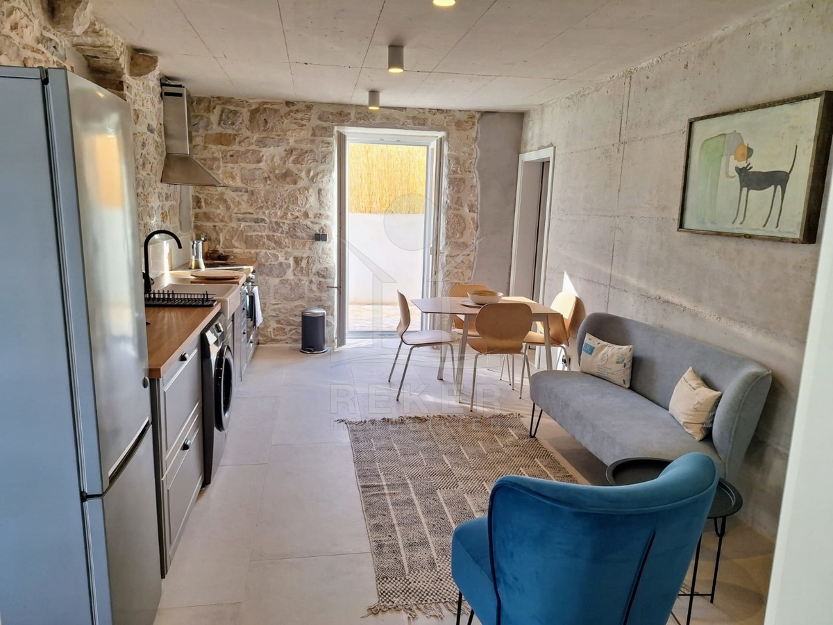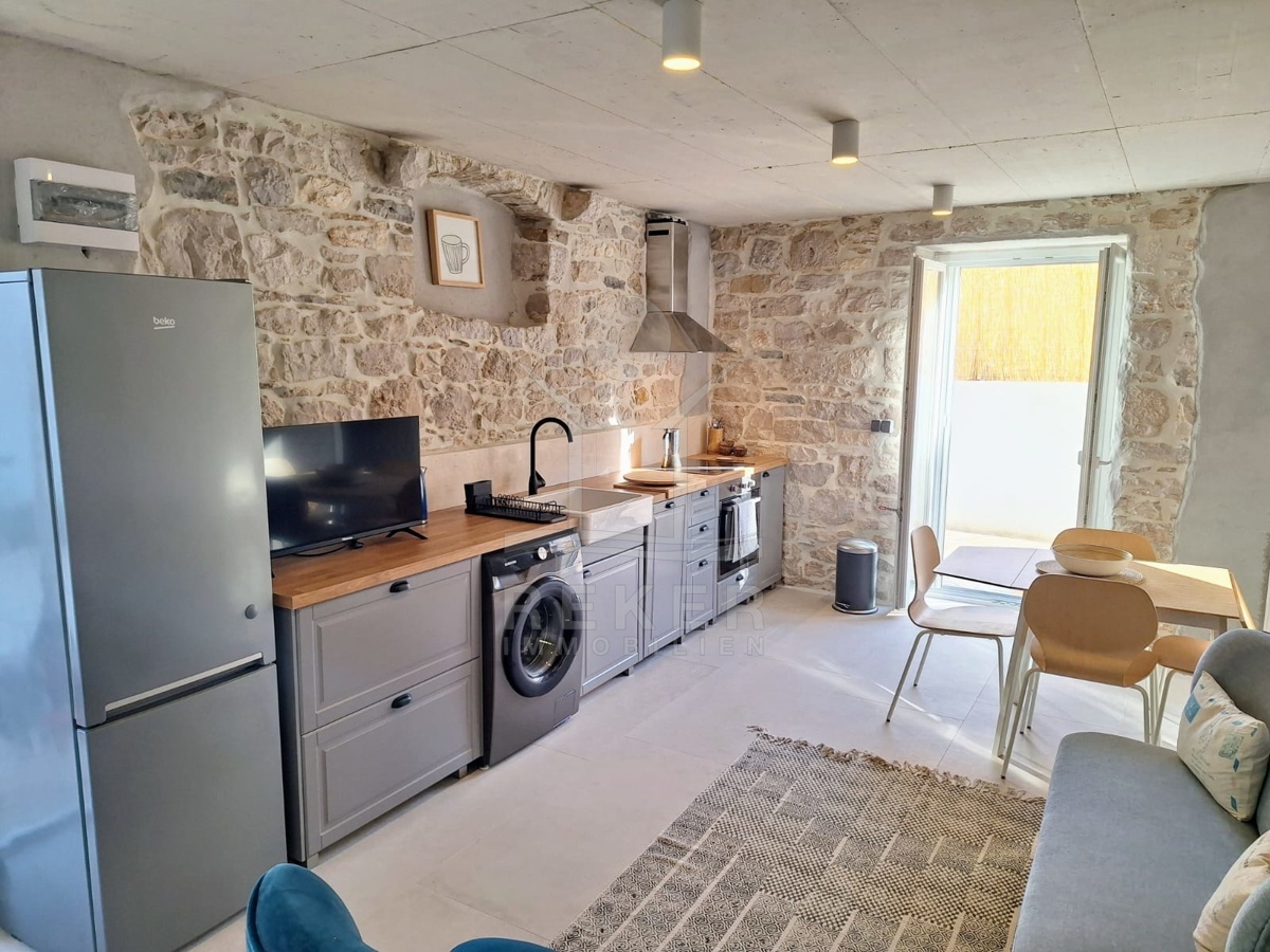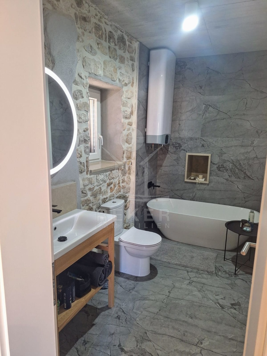 Das schöne Steinhaus auf der malerischen Insel Brač bietet Ihnen die ideale Kombination aus Ruhe und Nähe zu erstklassigen Stränden. Nur wenige Minuten vom Meer entfernt, können Sie sich in der warmen Adriatischer Sonne entspannen und die Vielfalt der Strände genießen, die insgesamt über 170 km entlang der Küste verstreut sind. Das Zentrum des Ortes ist nur 200 Meter entfernt, wo Sie lokale Geschäfte, Restaurants und Cafés finden, die die kroatische Gastfreundschaft bieten. Die Insel Brač ist nicht nur bekannt für den atemberaubenden Kiesstrand Zlatni Rat in Bol, sondern auch für ihre beeindruckende kulturelle Geschichte - von antiken römischen Bauten bis hin zu alten kroatischen Kirchen in der ganzen Umgebung. Die nahegelegenen Orte wie Supetar, Pučišća und Postira sind besonders bei Touristen beliebt und bieten eine Vielzahl von Freizeitmöglichkeiten. Der hufeisenförmige Strand von Supetar ist ein Hotspot für Besucher, die das kristallklare Wasser und die örtliche Atmosphäre genießen möchten. Die Anbindung an das Festland ist durch Fährverbindungen von Supetar nach Split sowie durch einen kleinen Flughafen in Bol, der kleine Verkehrsflugzeuge aus europäischen Städten empfängt, sehr gut. Genießen Sie das Beste, was die Adria zu bieten hat, und entdecken Sie die Schönheit und den Charme dieser einzigartigen Insel!
