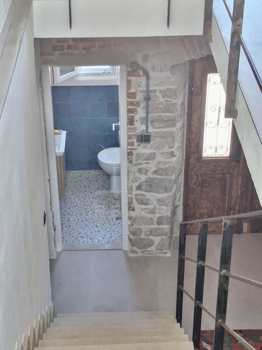 Das Reihenhaus erstreckt sich über eine Grundstücksfläche von 232 m² und ist komplett eingezäunt, was Ihnen die gewünschte Privatsphäre bietet. Auf 3 Etagen und einer Wohnfläche von 200 m² wurde das Haus vollständig renoviert und vereint geschickt rustikale Elemente mit moderner Ausstattung. Die robusten Steinmauern verleihen dem Gebäude Charakter, während das Innere durch eine harmonische Gestaltung besticht.