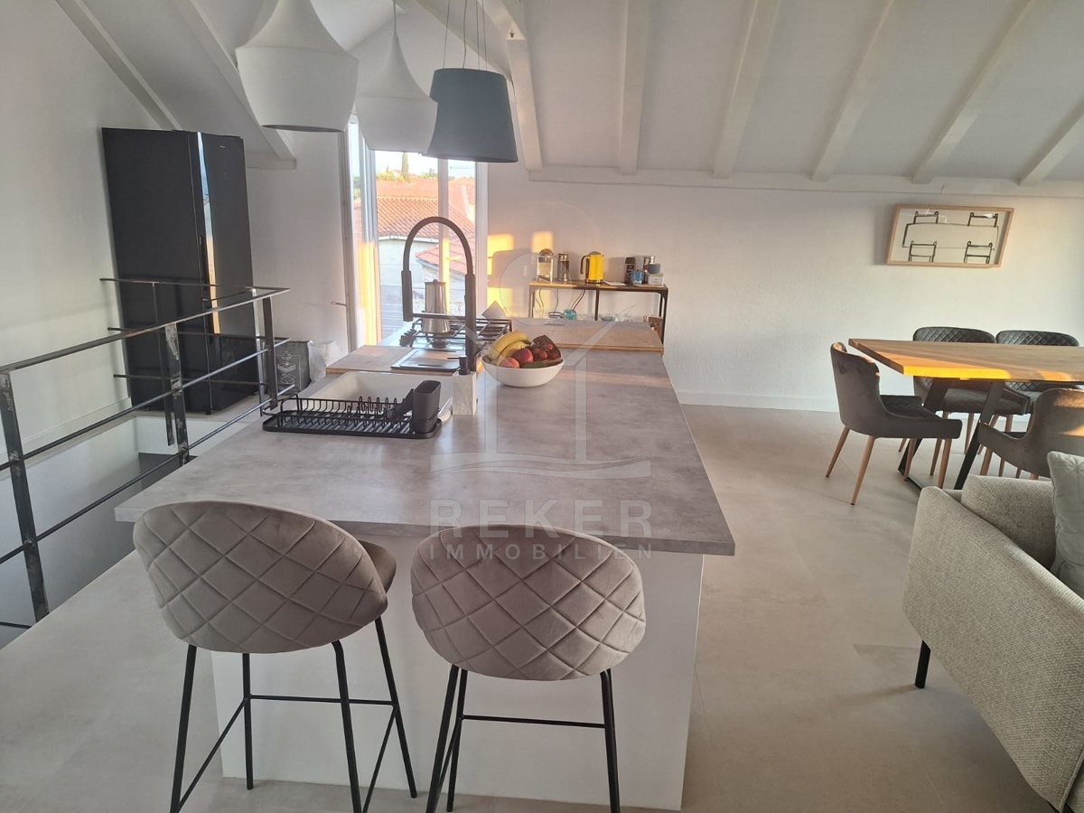 Die zweite Wohnung erstreckt sich über das erste und zweite Obergeschoss. Sie ist über eine Außentreppe erreichbar und bietet zwei großzügige Schlafzimmer, ein modernes Bad, ein separates WC sowie ein einladendes Wohnzimmer mit offener Küche und Essbereich. Ein Balkon rundet das Angebot ab und lädt zum Entspannen im Freien ein.