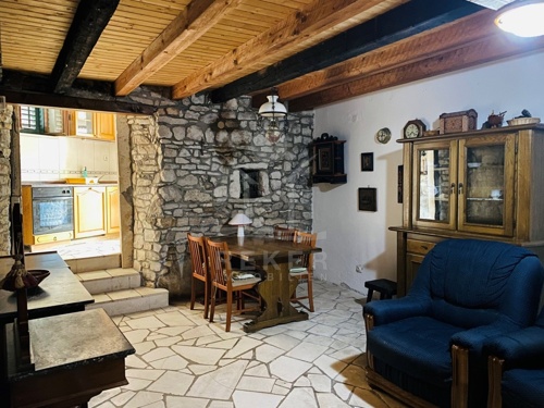 Gegenüber befindet sich ein weiteres ansprechendes Steinhaus mit einer Fläche von 44 m². Das erste Stockwerk beherbergt eine gut ausgestattete Küche, ein Badezimmer und ein weitläufiges Wohnzimmer mit Essbereich. Eine Innentreppe führt zur Galerie, wo sich ein Schlafzimmer mit Zugang zur Terrasse befindet, ideal für gemütliche Abende unter dem Sternenhimmel.