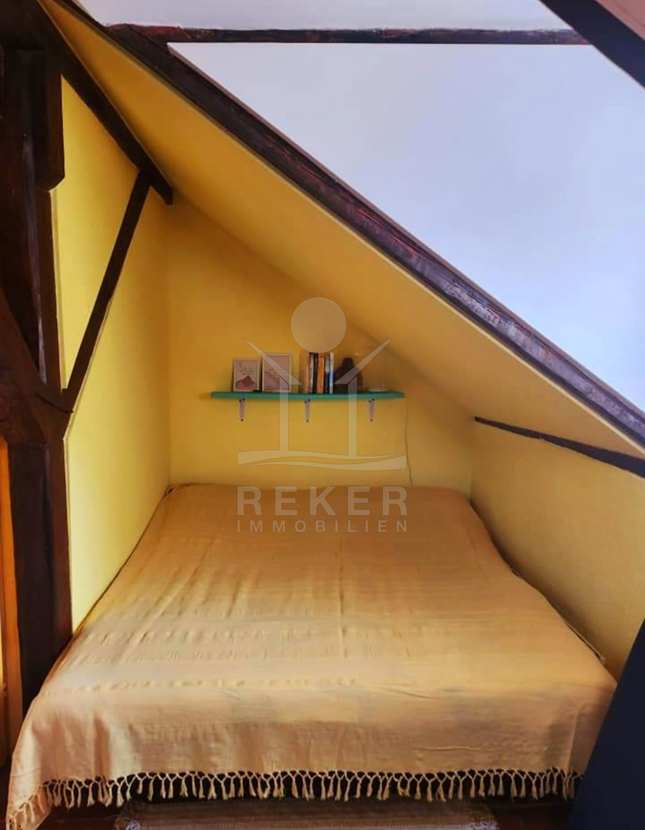 Der Dachboden bietet zusätzlichen Raum mit einem großen Raum und einem weiteren Schlafzimmer, ergänzt durch einen kleinen Abstellraum, der vielseitige Nutzungsmöglichkeiten eröffnet. Mit einer kleinen Investition haben Sie die Möglichkeit, das Potenzial dieser Wohnung zu entfalten und ein wunderbares, antikes Wohnobjekt zu schaffen, das ganz nach Ihren Wünschen gestaltet werden kann.
