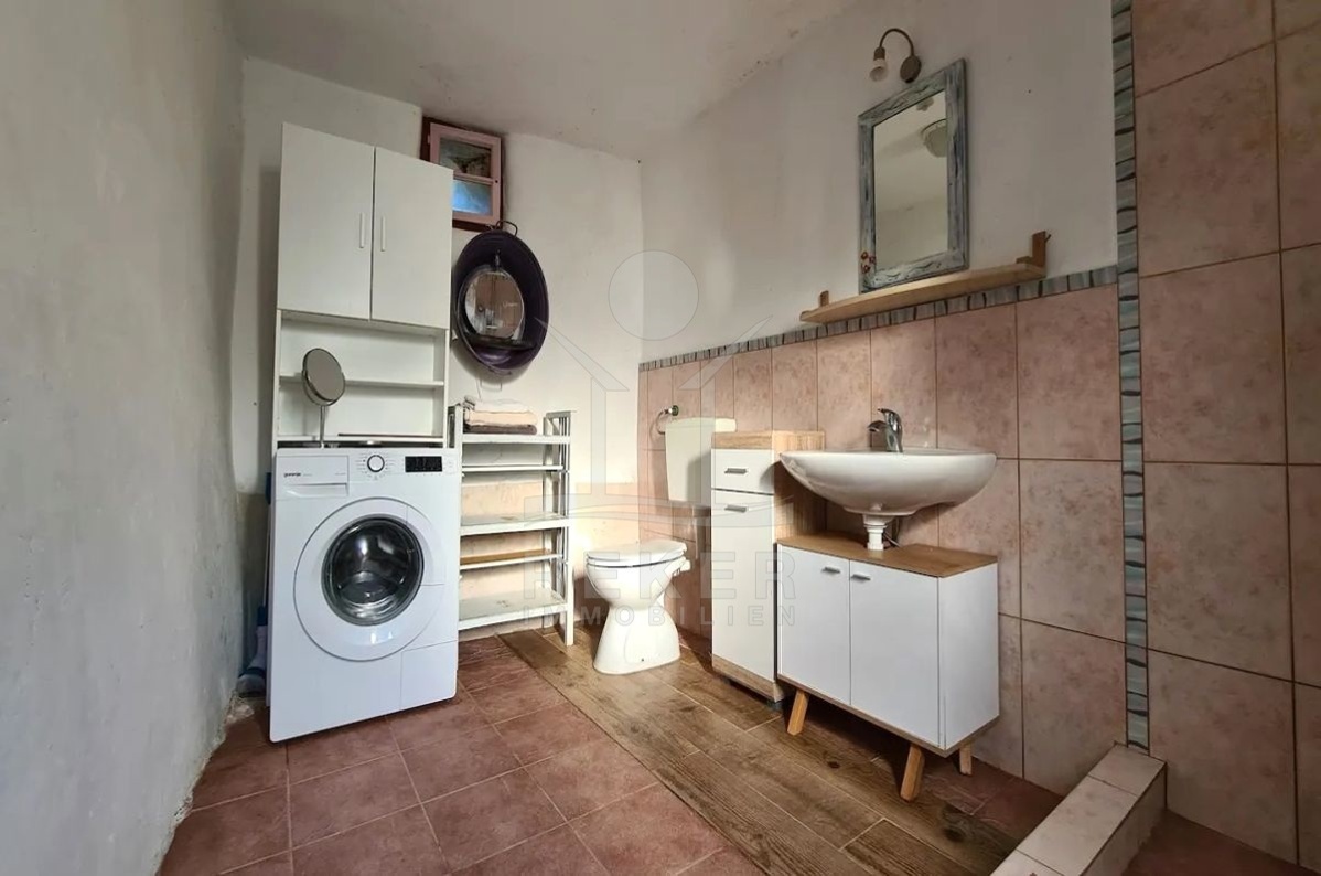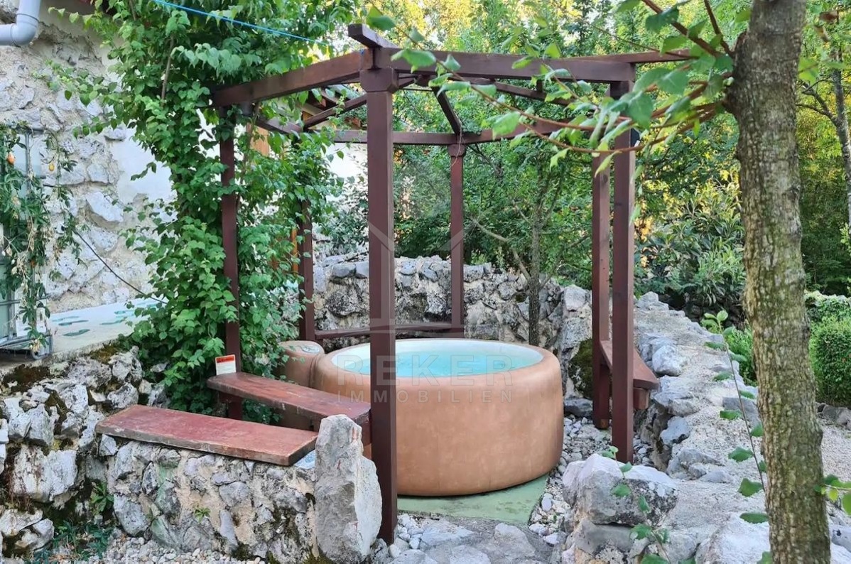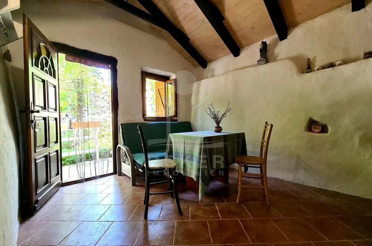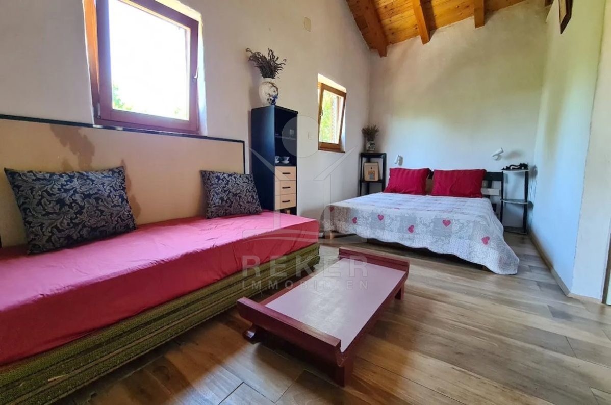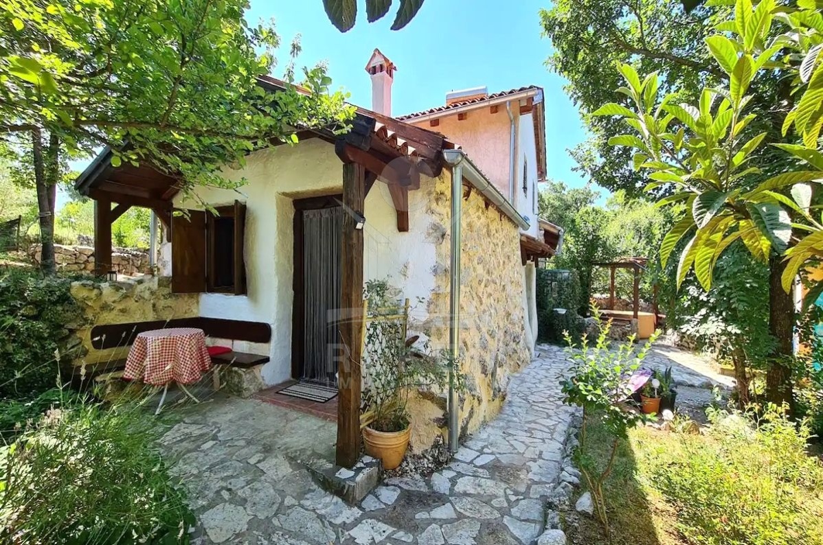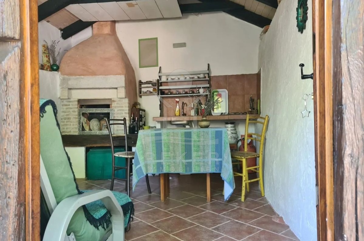 Das Anwesen befindet sich auf einem weitläufigen Grundstück von 1.310 m² und einer Wohnfläche von 100 m², das von einer schönen Natur umgeben ist. Der mediterran gestaltete Garten verleiht dem Anwesen einen einzigartigen Charme. Das Haus erstreckt sich über 2 Stockwerke, wurde zuletzt 2014 renoviert und verfügt über eine Offenheizung mit Holz sowie eine Wasserversorgung aus einem eigenen Tank. Das frei stehende Haus wird durch ein separates Gebäude ergänzt, welches ein Studio-Apartment und eine Terrasse beherbergt. Parkplatz steht zur Verfügung.