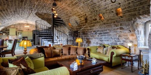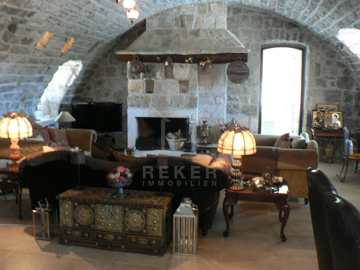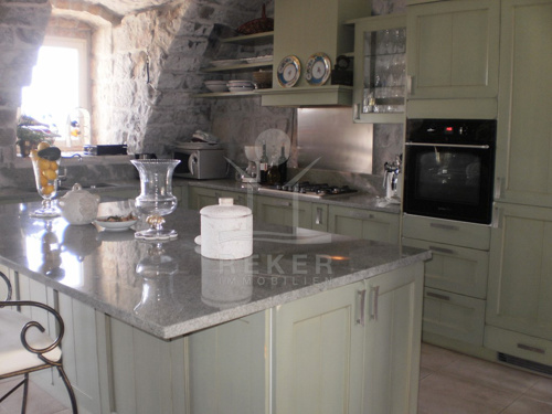 Das Haus selbst vereint Tradition mit Anspruch. Natursteinmauern, Holz-Alu-Fenster mit Dreifachverglasung, ein Gewölbesalon mit Kamin und geschwungener Treppe. Die Küche im Landhausstil ist voll ausgestattet und hat eine große Kochinsel. Zwei Schlafzimmer im Haupthaus verfügen über en-suite Bäder. Dazu kommen ein separates Gästeapartment mit Wohnbereich und ein Arbeitszimmer. Im Gästehaus finden sich zwei weitere Schlafzimmer, zwei Bäder und ein Wohnzimmer. Alles ist klimatisiert, mit Wärmepumpe beheizbar, komplett möbliert und bezugsfertig.