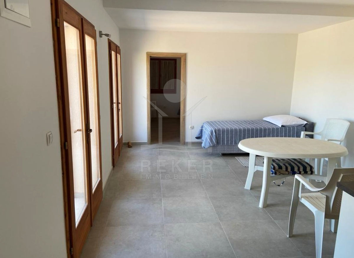 Eine Außentreppe aus Stein führt in den ersten Stock, wo eine weitere Küche mit Esszimmer, ein Wohnzimmer mit Zugang zur großzügigen Terrasse, sowie zwei Schlafzimmer und ein Badezimmer auf Sie warten. Hier können Sie die frische Luft genießen und viel Zeit im Freien verbringen.