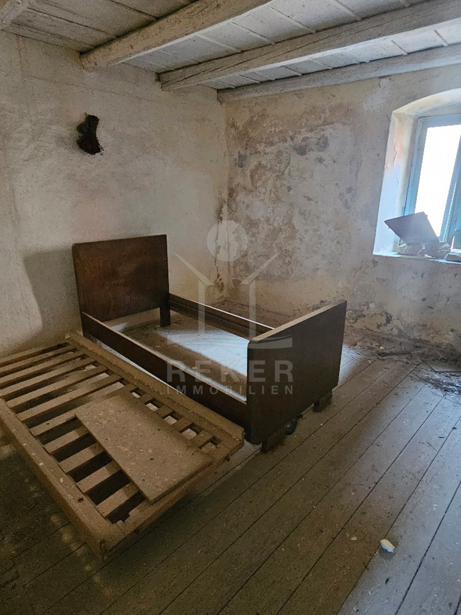 Die Häuser verteilen sich auf etwa 235 m² Wohnfläche. Einige Räume sind noch möbliert, andere leer. Sichtbare Holzbalken, massive Mauern und alte Fensterflügel erzählen von der Geschichte des Ortes. Es gibt eine einfache Innentreppe und mehrere Außenzugänge, was verschiedene Nutzungskonzepte möglich macht. Der Zustand: original und renovierungsbedürftig – genau richtig für alle, die ein echtes Projekt mit Charakter suchen.