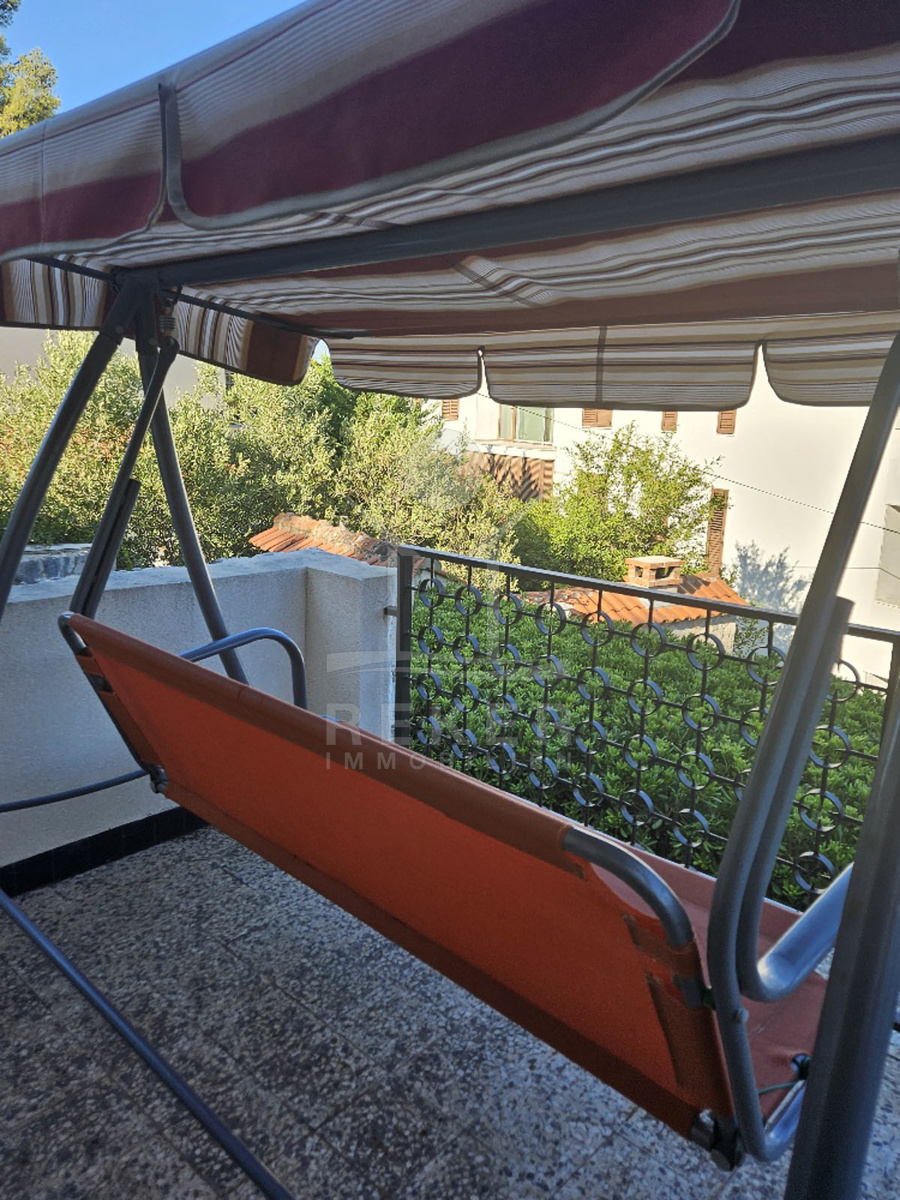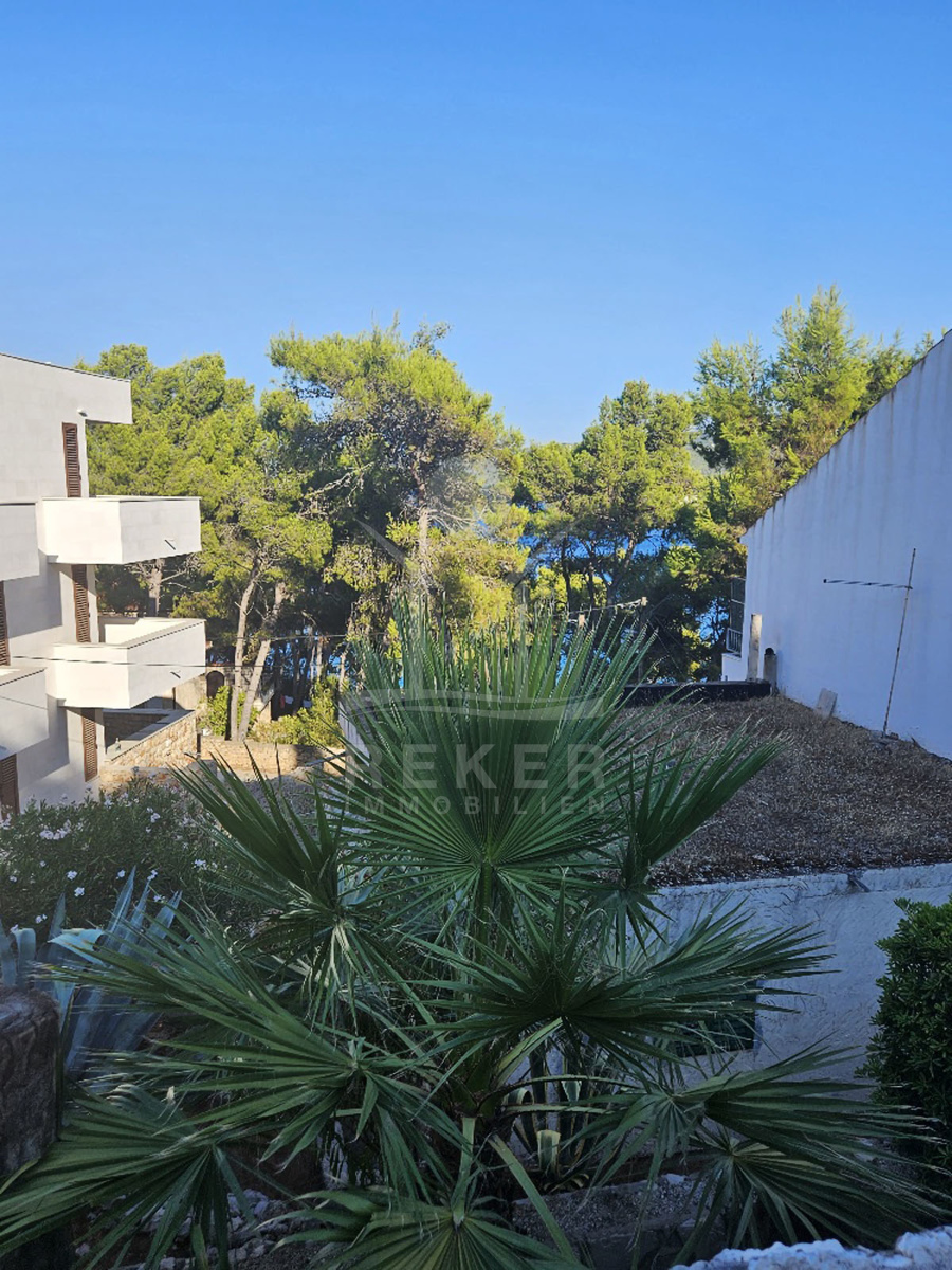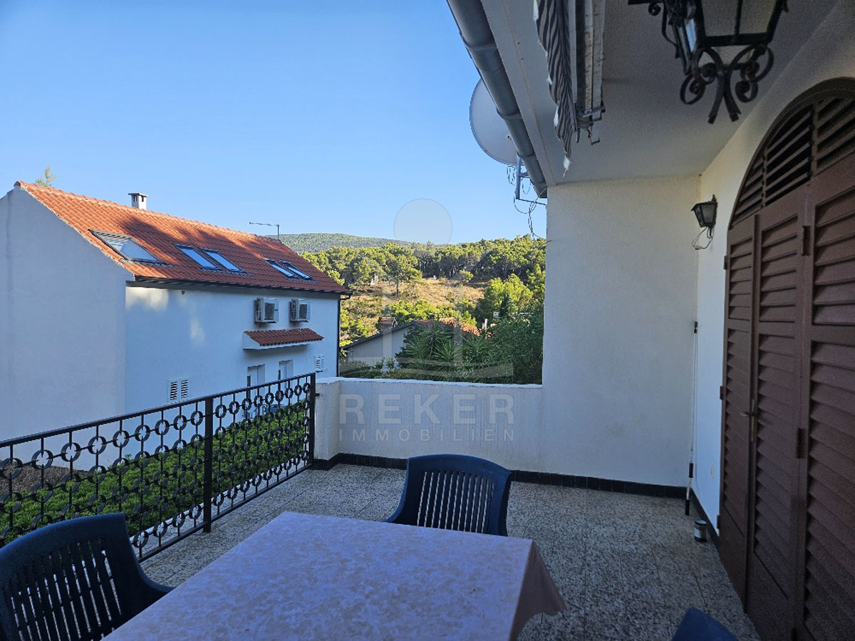 Im 1. Stock erwartet Sie eine großzügige 1-Zimmerwohnung mit einem großen Wohnzimmer, das den Zugang zu einer geräumigen, angenehmen Terrasse bietet. Die Möglichkeit, ein zusätzliches Geschoss zu errichten, erweitert das Potenzial und bietet einen weiteren Meerblick.