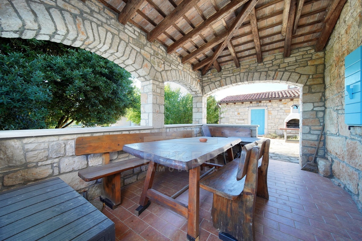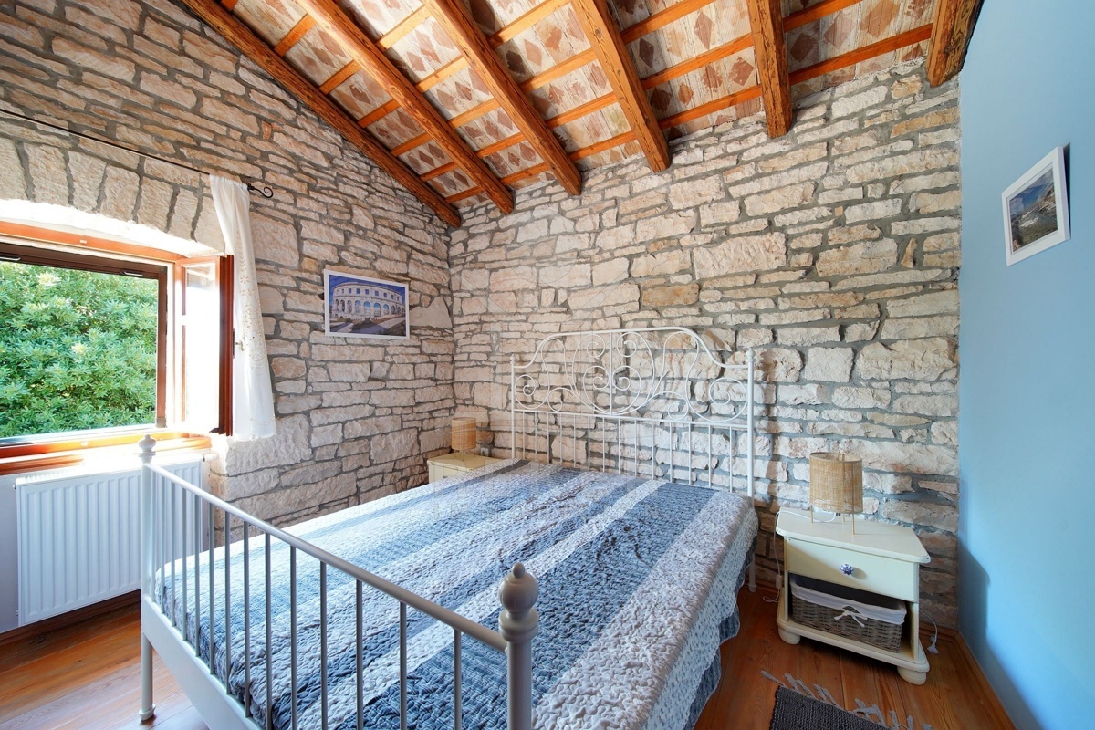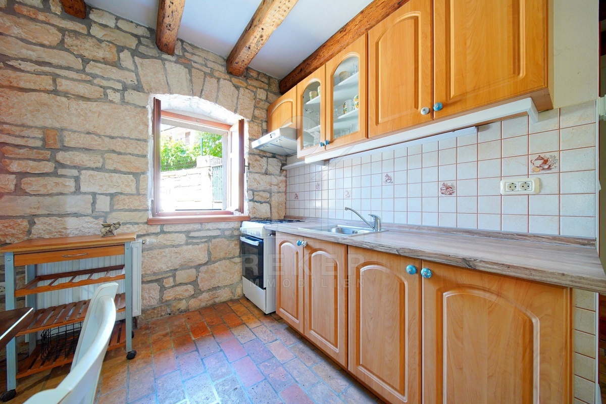 In einem ruhigen Dorf bei Kanfanar, nur 19 Kilometer von Rovinj und 20 Kilometer vom Meer entfernt, steht dieses Steinhaus. Hier genießen Sie ländliche Idylle und bleiben dennoch gut angebunden. Geschäfte und Restaurants liegen 2 Kilometer entfernt, die Autobahn erreichen Sie nach 5 Kilometern, den Flughafen Pula nach 35 Kilometern. Das Anwesen ist vollständig ummauert und bietet Stellplätze für vier Autos.