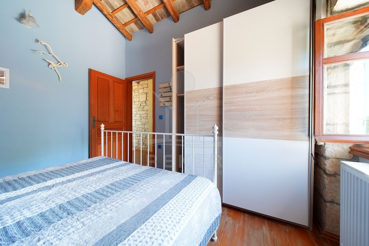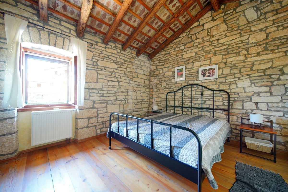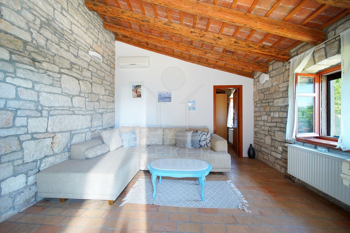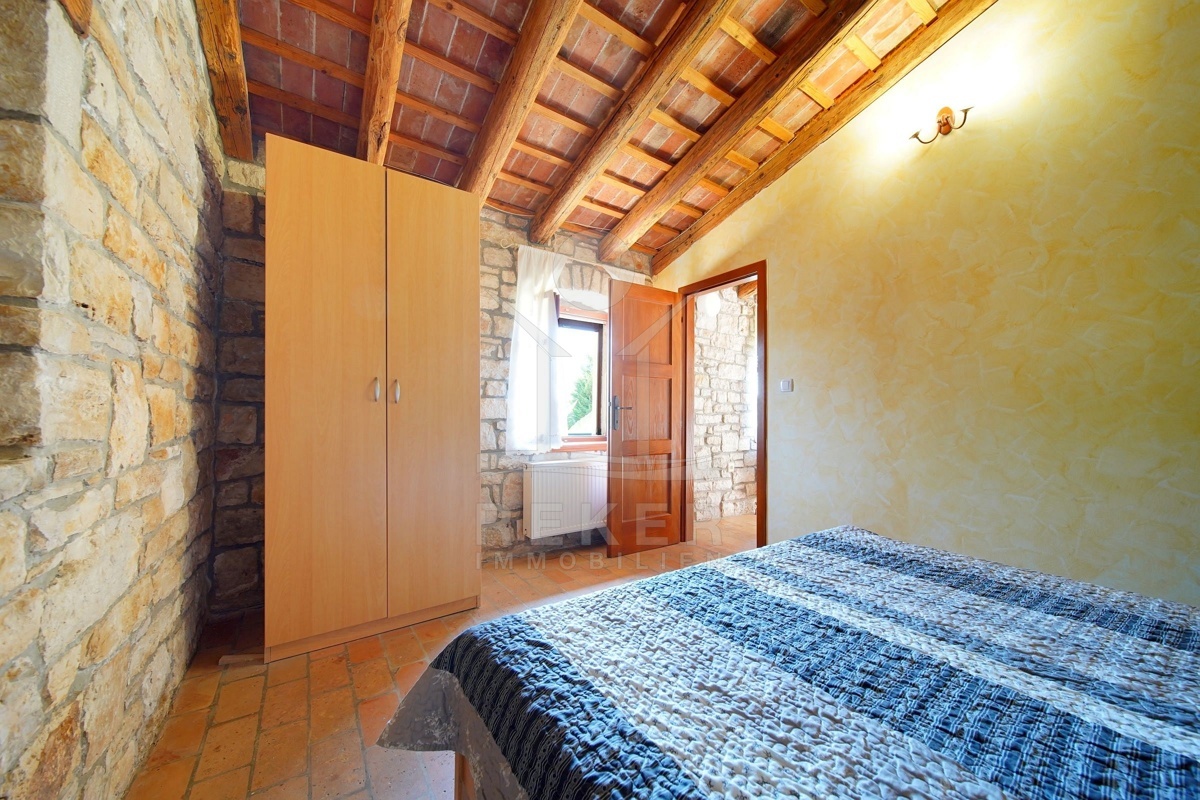 In einem ruhigen Dorf bei Kanfanar, nur 19 Kilometer von Rovinj und 20 Kilometer vom Meer entfernt, steht dieses Steinhaus. Hier genießen Sie ländliche Idylle und bleiben dennoch gut angebunden. Geschäfte und Restaurants liegen 2 Kilometer entfernt, die Autobahn erreichen Sie nach 5 Kilometern, den Flughafen Pula nach 35 Kilometern. Das Anwesen ist vollständig ummauert und bietet Stellplätze für vier Autos.