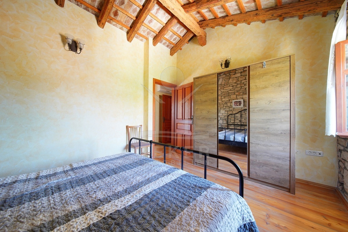 Das Haus bietet 112 Quadratmeter Wohnfläche. Es stammt aus dem Jahr 1900 und wurde 2008 renoviert. Im Erdgeschoss erwarten Sie ein Wohnzimmer mit Kamin, eine Küche mit Essbereich, ein Schlafzimmer, ein Bad sowie offene und überdachte Terrassen. Über die Innentreppe gelangen Sie in den ersten Stock mit zwei weiteren Schlafzimmern und einem zusätzlichen Bad. Natursteinwände, Holzbalken und Terracotta-Böden prägen das Ambiente. Moderne Heiztechnik, Klimaanlagen und Doppelverglasung sichern den Komfort. Das Ensemble wird möbliert verkauft und ist sofort beziehbar.