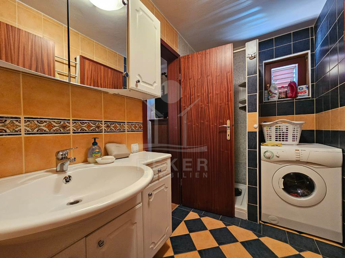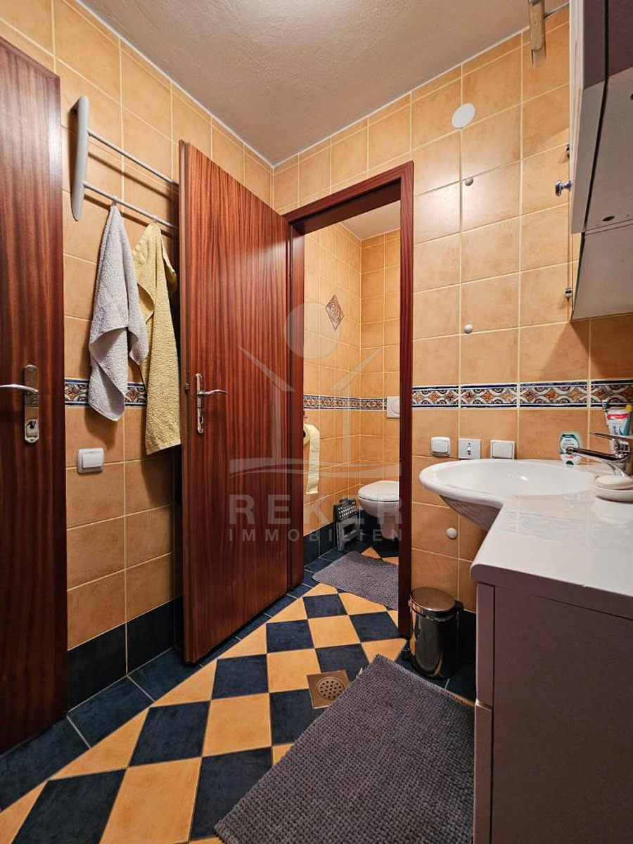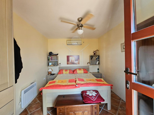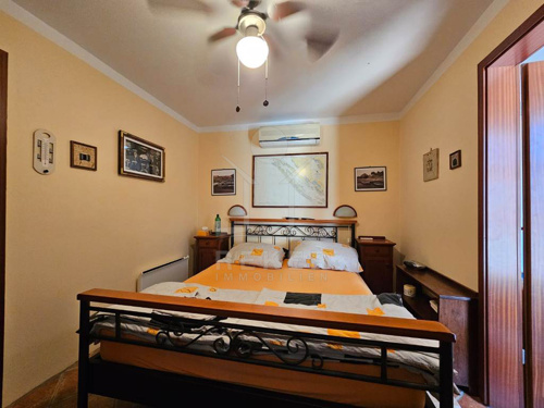 Die Wohnfläche beträgt 124 m², die Villa wird möbliert übergeben. Im Erdgeschoss erwarten Sie die Küche mit Ess- und Wohnbereich, ein Schlafzimmer, ein Badezimmer sowie die Veranda mit schönem Ausblick. Im seitlichen Flügel schließen sich drei weitere Schlafzimmer und ein Badezimmer an. Alle Räume sind miteinander verbunden und öffnen sich zur Terrasse. Im Untergeschoss stehen zwei Abstellräume zur Verfügung, einer davon als Zimmer gestaltet. Hinzu kommen zusätzliche Lager- und Speisemöglichkeiten. Vier Schlafzimmer plus eine zusätzliche Zimmeroption bieten Ihnen großzügigen Platz für Familie oder Gäste.