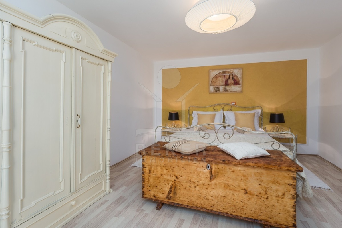 Im Preis inbegriffen sind die meisten Möbel, was den Einzug besonders unkompliziert macht. Im Erdgeschoss befindet sich eine schön eingerichtete und komplett renovierte Wohnung, die über zwei Schlafzimmer, ein modernes Bad, ein gemütliches Wohnzimmer, ein Esszimmer und eine praktische Küche verfügt.