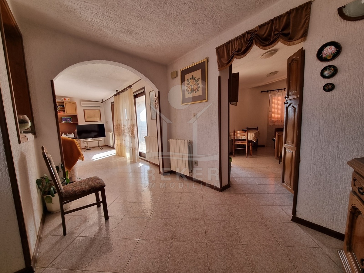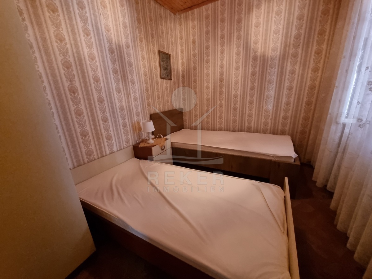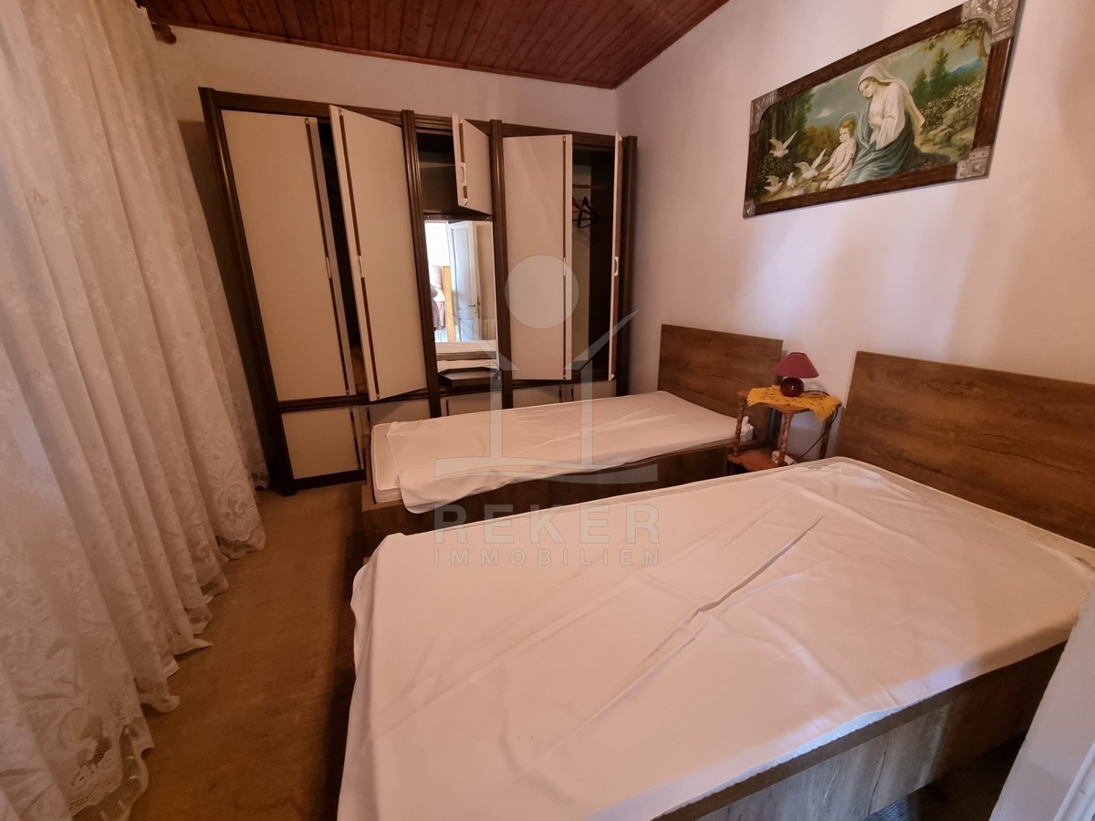 Das Steinhaus, errichtet 1968 und 1996 renoviert, beherbergt insgesamt drei Wohneinheiten sowie eine großzügige Taverne. Die Wohnung im Erdgeschoss wurde vor 2022 frisch renoviert und besticht durch ihren modernen Komfort. Der Großteil der Fassade ist mit Stein verkleidet, was dem Gebäude einen zeitlosen Charakter verleiht. Auf einem 380 m² großen, umzäunten Grundstück befindet sich ein ansprechender Steingarten im Innenhof. Die Heizung wird über eine Ölzentralheizung geregelt, und ein Parkplatz ist ebenfalls vorhanden.
