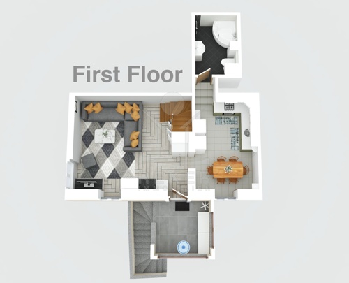 Das Haus umfasst 175 m² Wohnfläche, verteilt auf zwei getrennte Einheiten. Im Erdgeschoss gibt es eine Einzimmerwohnung mit ca. 70 m², im Obergeschoss eine Zweizimmerwohnung mit ca. 104 m². Insgesamt stehen drei Schlafzimmer und zwei Badezimmer zur Verfügung.