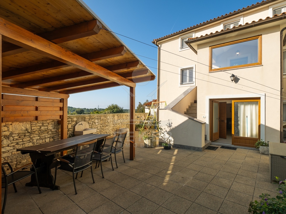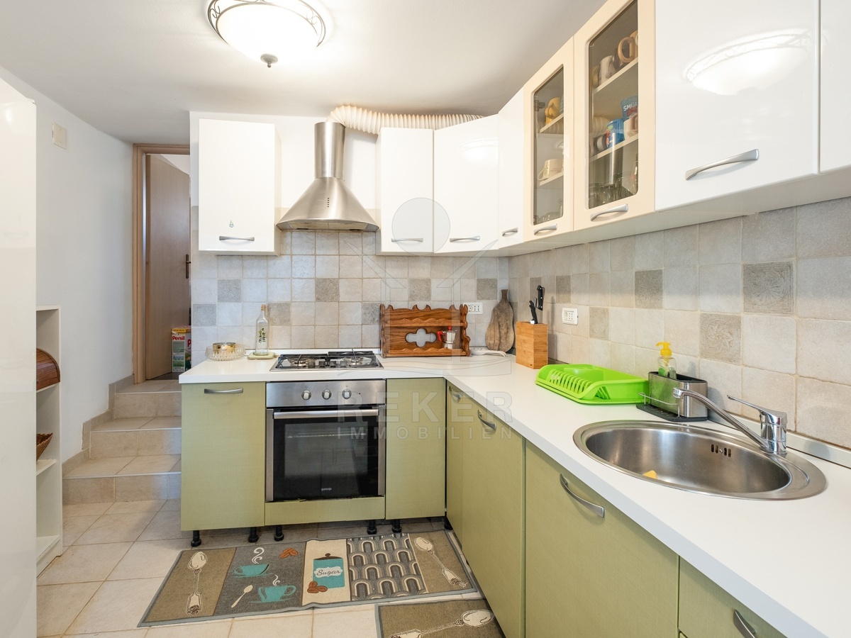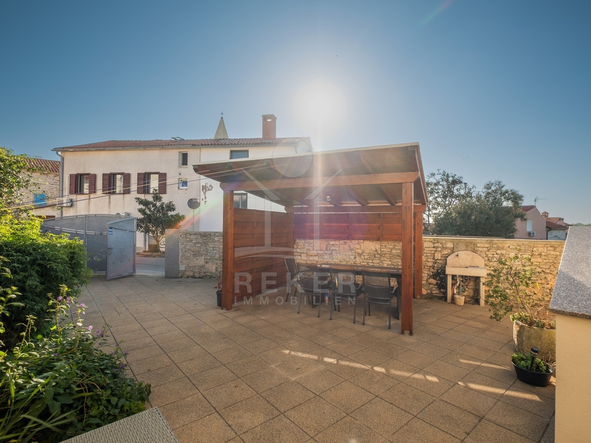 In Ližnjan, einem ruhigen Küstenort in Istrien, steht dieses renovierte Steinhaus zum Verkauf. Das Meer ist nur rund 2,3 km entfernt, der Strand Uvala Ližnjan etwa 1,5 km. Die Lage verbindet Ruhe und Nähe: Geschäfte, Schule und Kindergarten erreichen Sie bequem zu Fuß. Zwei private Stellplätze befinden sich direkt am Haus, die Zufahrt ist asphaltiert. Im Erdgeschoss führt der Wohnbereich in den rund 220 m² großen Garten mit Hof und überdachter Terrasse. Ein idealer Platz für Kinder, Haustiere und gesellige Stunden im Freien. Durch die Südausrichtung bleibt es hier den ganzen Tag hell.