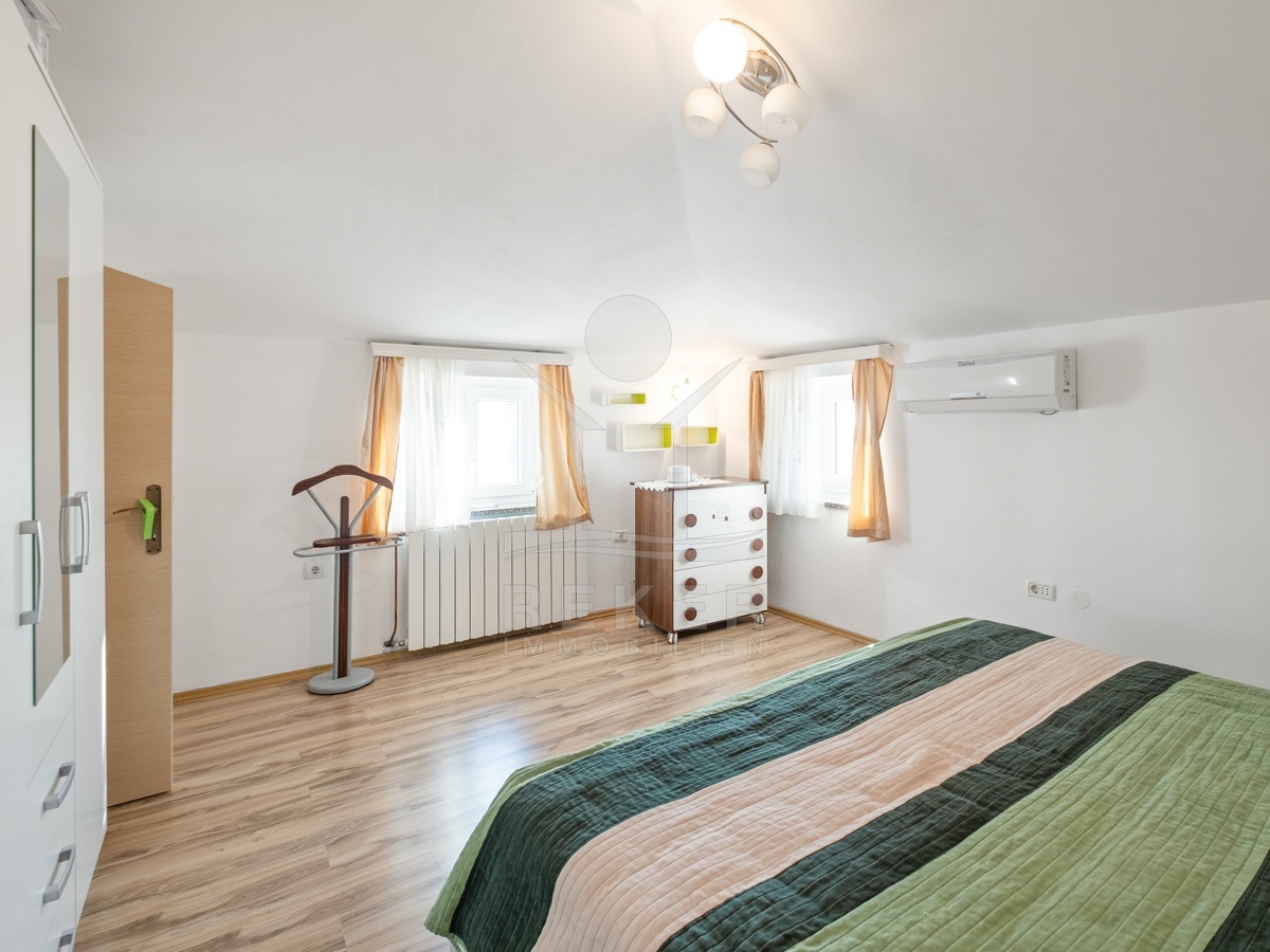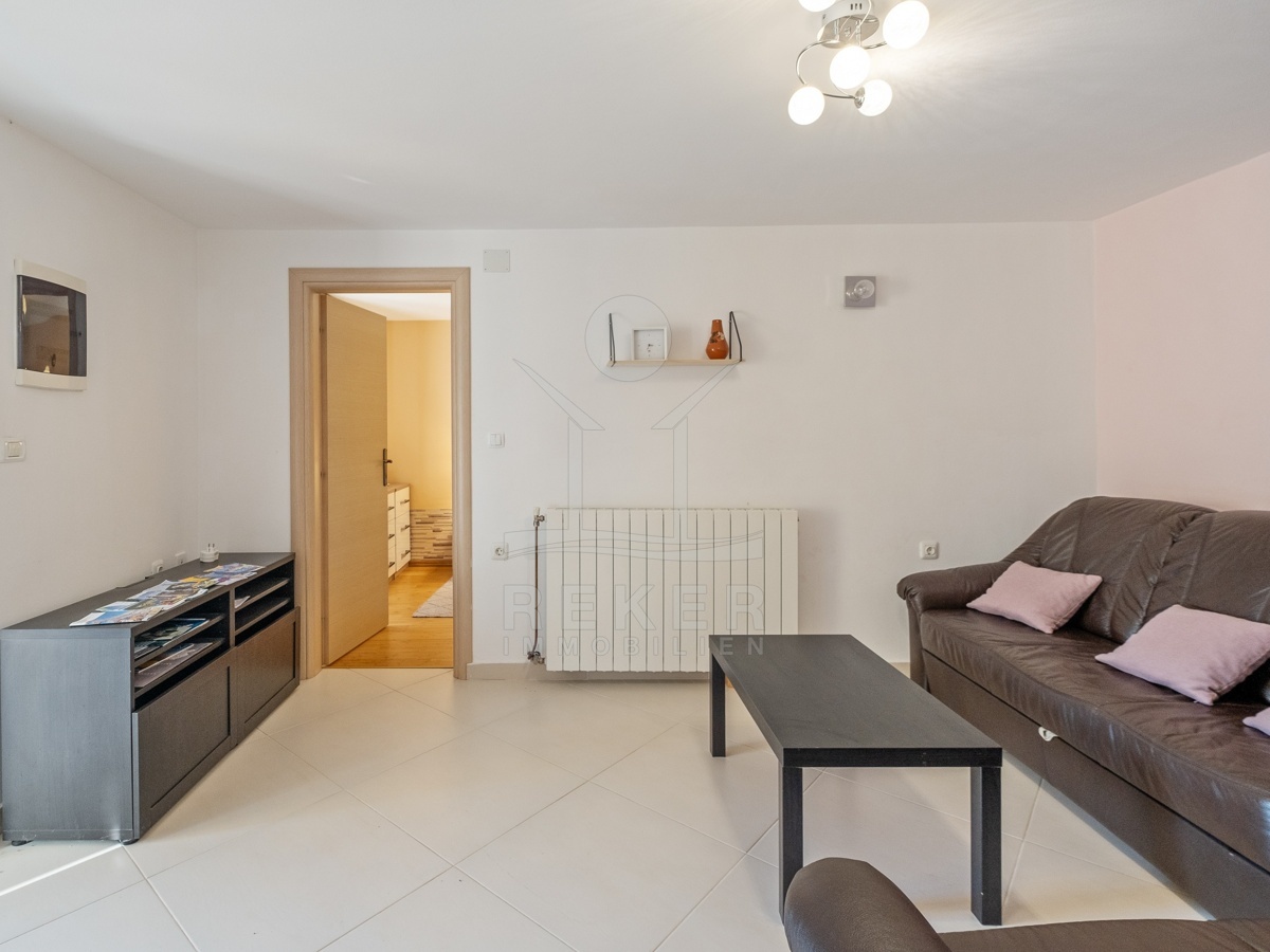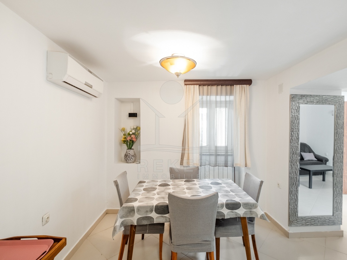 In Ližnjan, einem ruhigen Küstenort in Istrien, steht dieses renovierte Steinhaus zum Verkauf. Das Meer ist nur rund 2,3 km entfernt, der Strand Uvala Ližnjan etwa 1,5 km. Die Lage verbindet Ruhe und Nähe: Geschäfte, Schule und Kindergarten erreichen Sie bequem zu Fuß. Zwei private Stellplätze befinden sich direkt am Haus, die Zufahrt ist asphaltiert. Im Erdgeschoss führt der Wohnbereich in den rund 220 m² großen Garten mit Hof und überdachter Terrasse. Ein idealer Platz für Kinder, Haustiere und gesellige Stunden im Freien. Durch die Südausrichtung bleibt es hier den ganzen Tag hell.