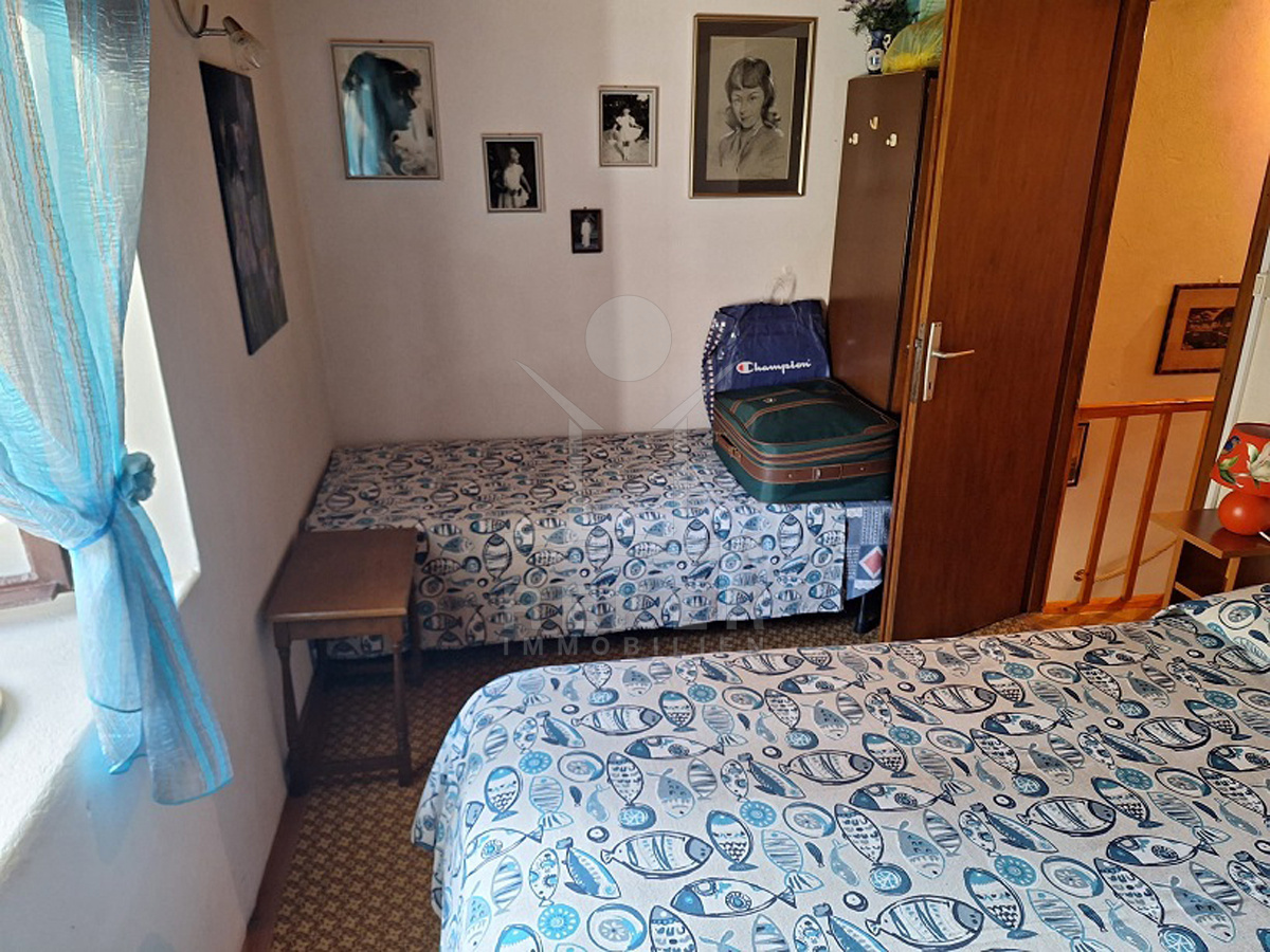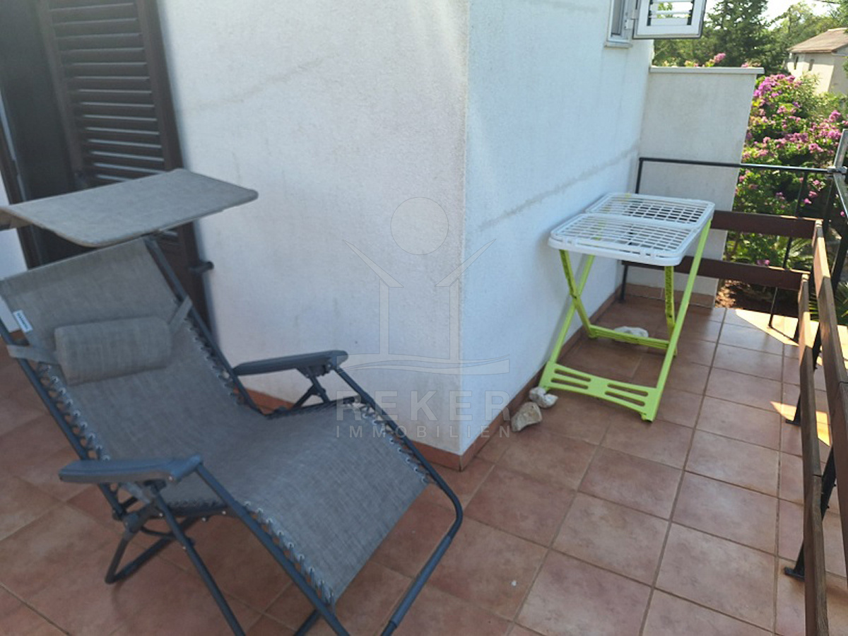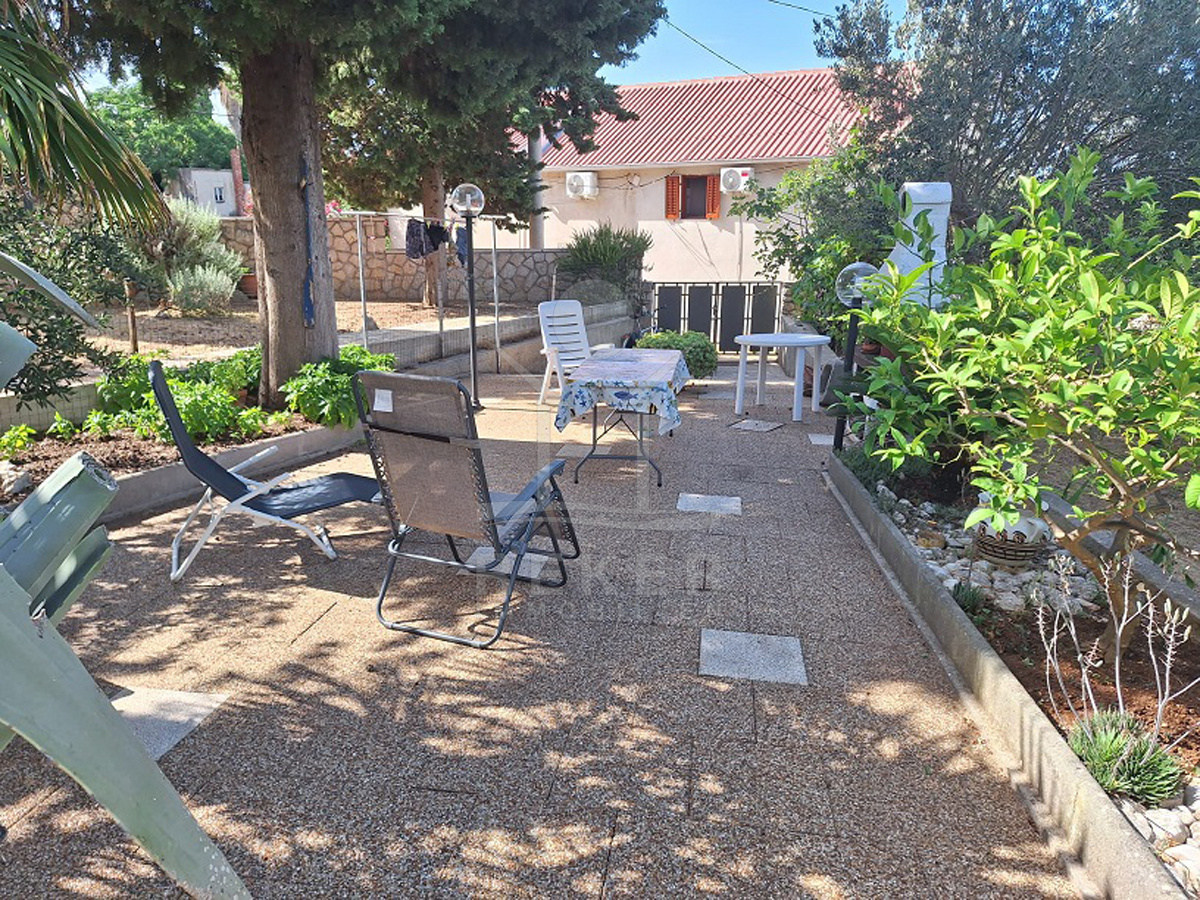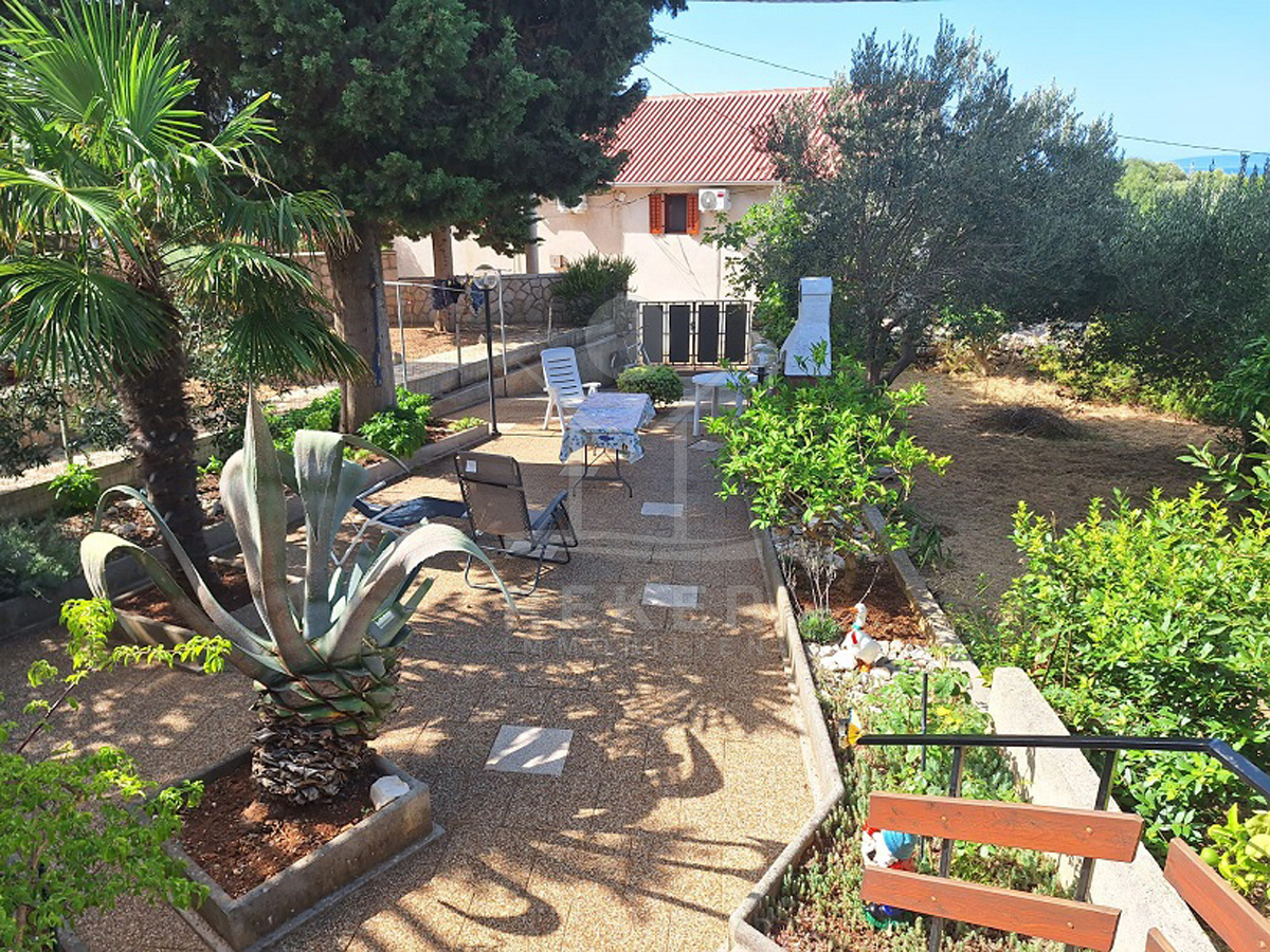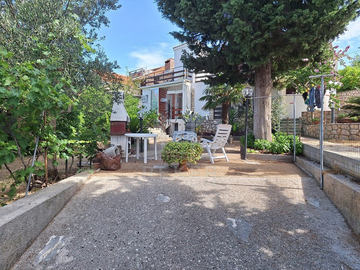 Vor dem Haus erstreckt sich ein 102 m² großer Garten. Olivenbäume, Palmen, Pinien und Reben schaffen mediterranes Flair. Mit dem Steingrill wird der Außenbereich zum Ort für gesellige Stunden. Dieses Haus verbindet Natur und Meernähe mit praktischen Details wie Stellplätzen, Garten und Terrasse. Eine attraktive Gelegenheit für alle, die Ruhe und mediterranes Wohnen suchen.