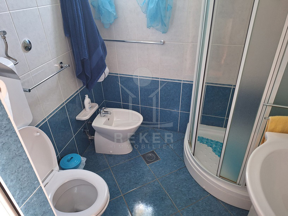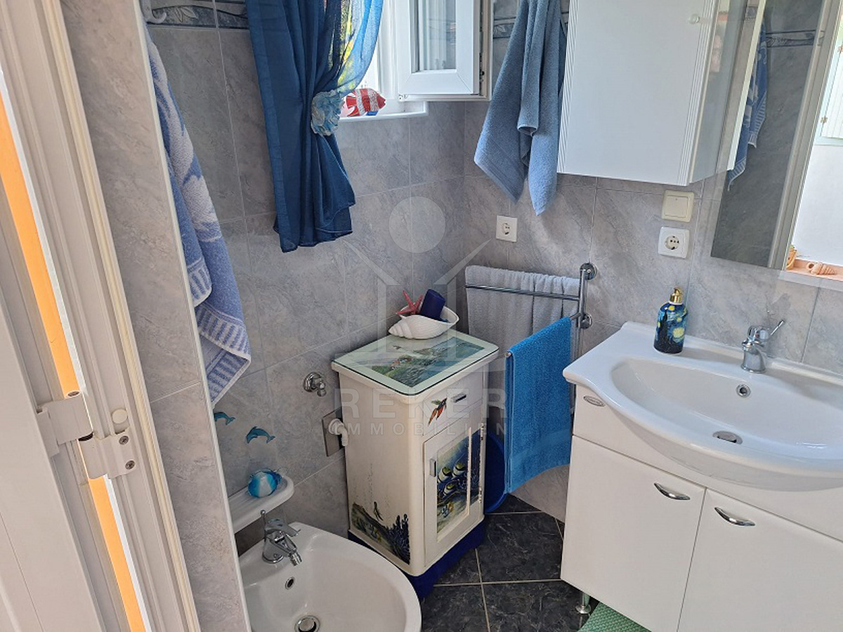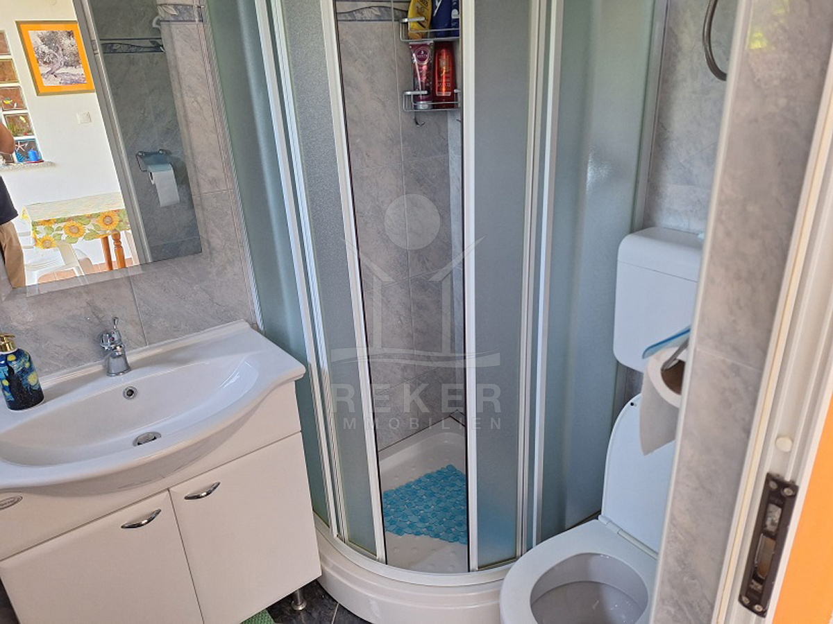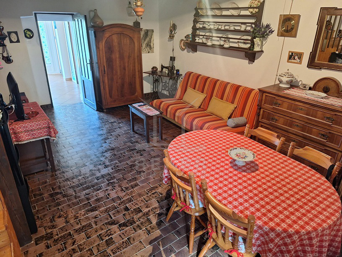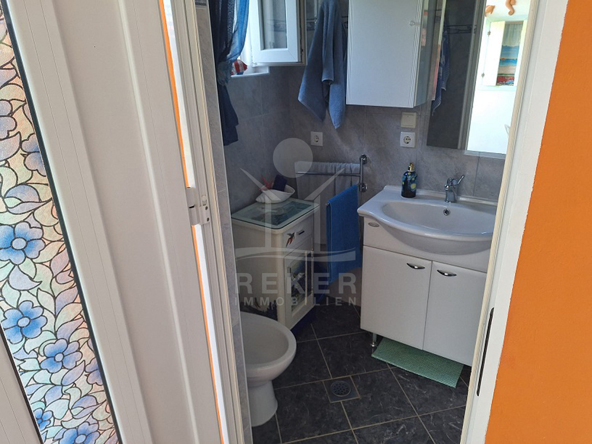 Vor dem Haus erstreckt sich ein 102 m² großer Garten. Olivenbäume, Palmen, Pinien und Reben schaffen mediterranes Flair. Mit dem Steingrill wird der Außenbereich zum Ort für gesellige Stunden. Dieses Haus verbindet Natur und Meernähe mit praktischen Details wie Stellplätzen, Garten und Terrasse. Eine attraktive Gelegenheit für alle, die Ruhe und mediterranes Wohnen suchen.