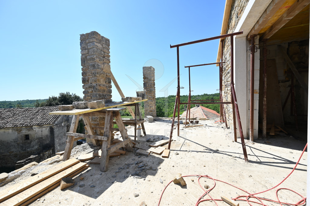 Das reizvolle Reihenhaus Steinhaus liegt inmitten einer bezaubernden hügeligen Landschaft in der Nähe von Buje. Diese idyllische und friedliche Umgebung bietet nicht nur Ruhe und Entspannung, sondern auch die Möglichkeit, die herrliche Natur von Zentralistrien zu entdecken. Die Lage ermöglicht es Ihnen, das Meer bequem mit dem Auto zu erreichen und gleichzeitig die Annehmlichkeiten des Zentrums von Buje in nur 5 km Entfernung zu nutzen. Buje selbst ist bekannt für seine fruchtbaren Böden, auf denen einige der renommiertesten Winzer Kroatiens ihre Weine anbauen. Die Weinstraßen führen durch malerische Weingärten und Olivenhaine, und die charmante Stadt ist ein Paradies für Wanderer und Radfahrer, die die grünen Hügel von Istrien erkunden möchten. In nur 15 Fahrminuten erreichen Sie die wunderschönen Strände von Novigrad und Umag, während abends die lokalen Weinkeller und Restaurants dazu einladen, die Köstlichkeiten der istrischen Küche zu genießen. Willkommen in Ihrem eigenen kleinen Paradies in Buje!