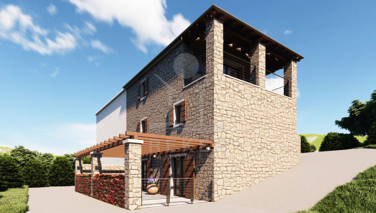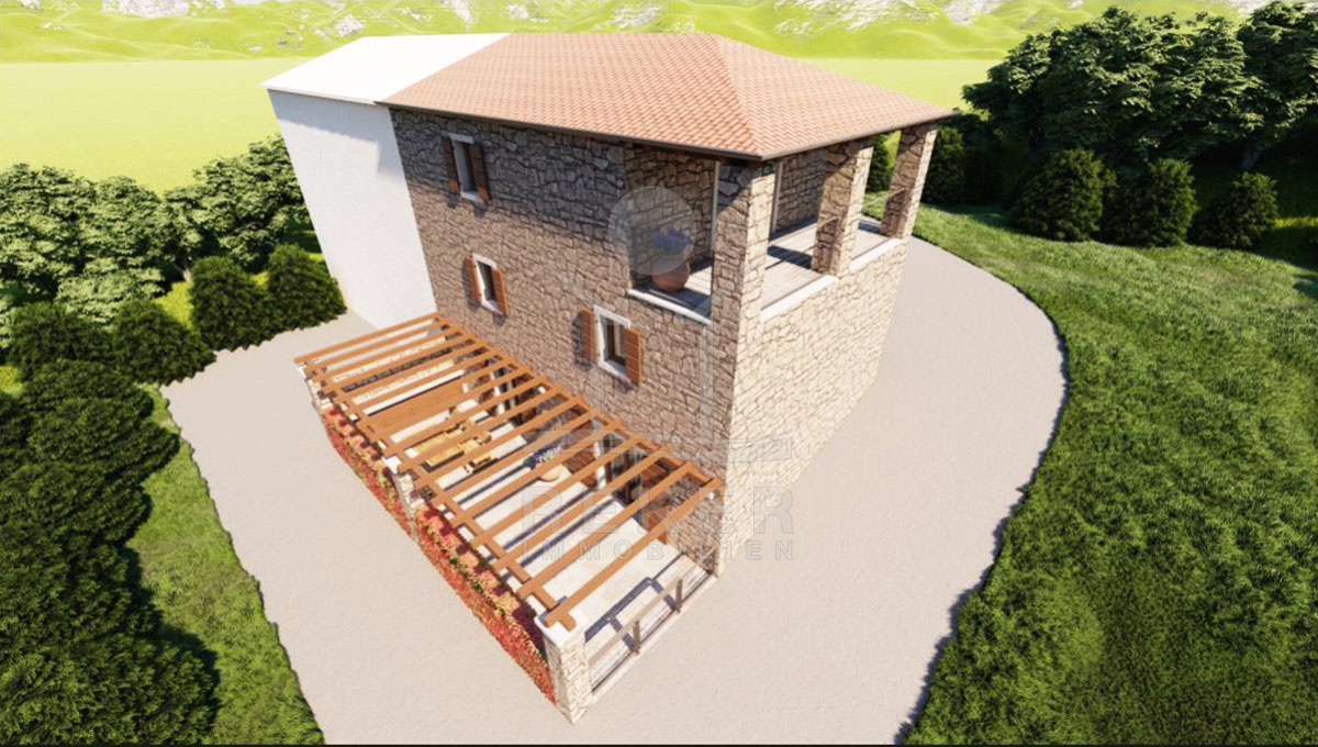 TRADITIONELLES STEINHAUS IN GRÜNER NATURREGION MIT MEERBLICK IN DER NÄHE VON BUJE