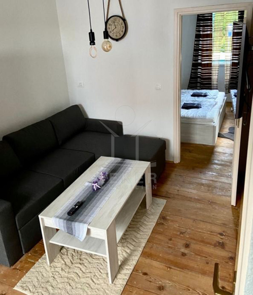 Ein Gemeinschaftsraum mit Kamin schafft Raum für gemeinsame Stunden. Treffpunkt im Haus. Der Keller mit elektrischem Glaseingang verbindet Funktion mit einem modernen Detail. Das Gebäude erstreckt sich über drei Stockwerke und kombiniert traditionellen Charakter mit einer klar auf touristische Nutzung abgestimmten Struktur.