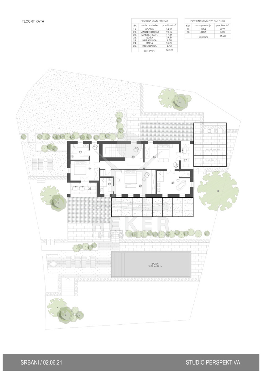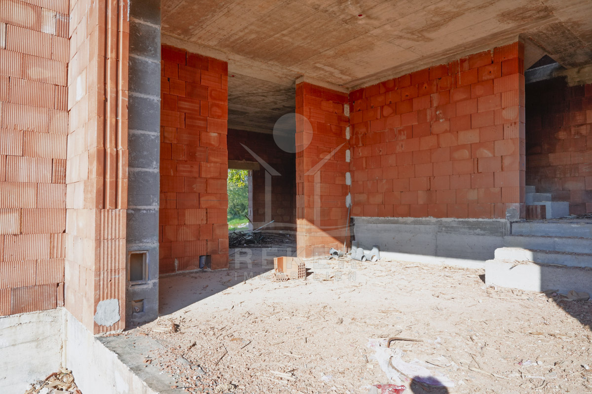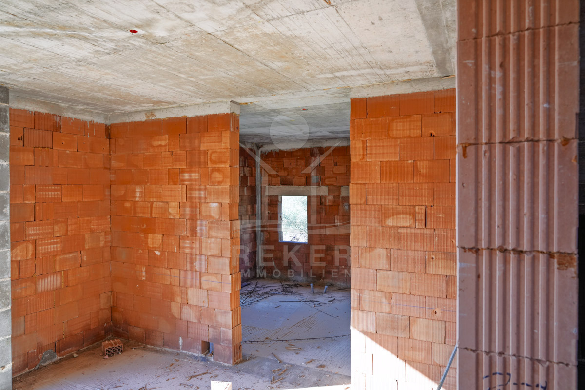 Im Obergeschoss befinden sich drei weitere Schlafzimmer, jeweils mit eigenem Bad. Der Balkon und große Fensterflächen bieten Ausblicke auf die grüne Umgebung und bis zum Meer. Zur Ausstattung zählen Fußbodenheizung, Klimaanlage und hochwertige Materialien. Das Haus wird schlüsselfertig übergeben und erfüllt aktuelle Baustandards.