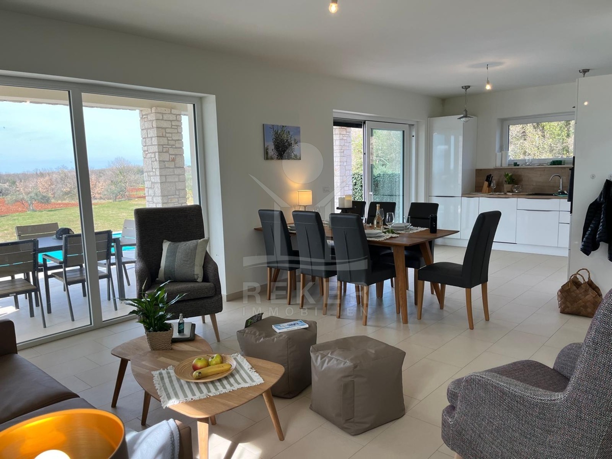 Dieses moderne, freistehende Haus bietet Ihnen eine ruhige Umgebung, nur 4,5 Kilometer vom Meer und vom Zentrum von Novigrad entfernt. Das Grundstück umfasst 652 m² und bietet Abstand zu Nachbarn. Zwei Stellplätze stehen direkt vor dem Haus bereit. Golfplätze, Yachthafen und Autobahn erreichen Sie dennoch in kurzer Zeit. Eine Lage, die im Alltag überzeugt.