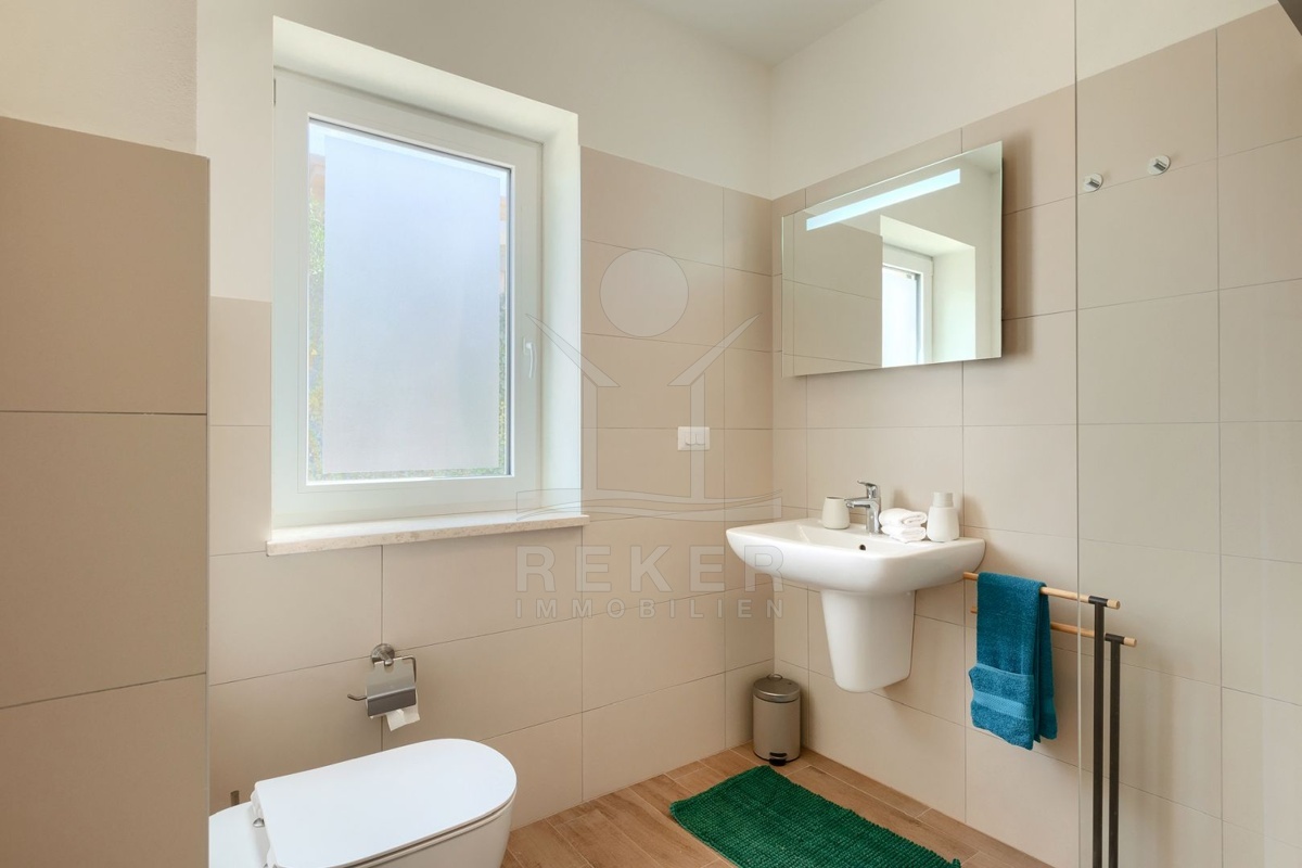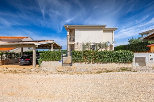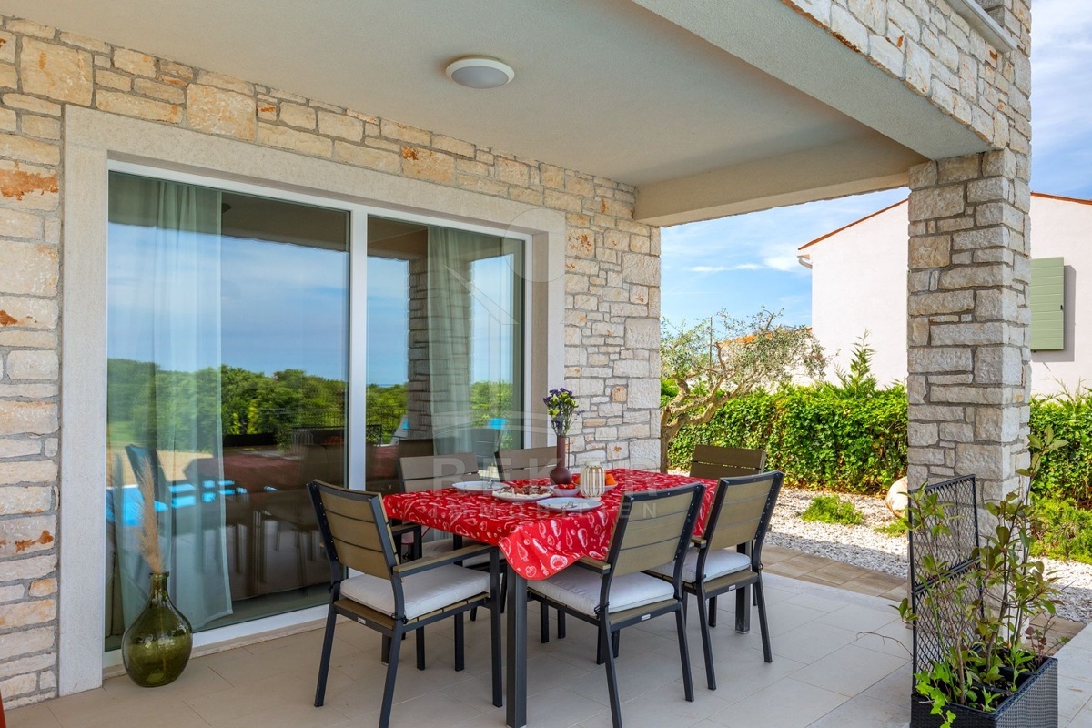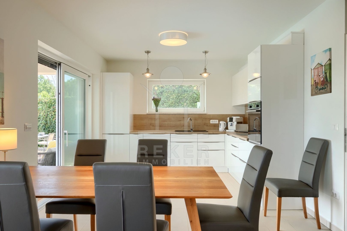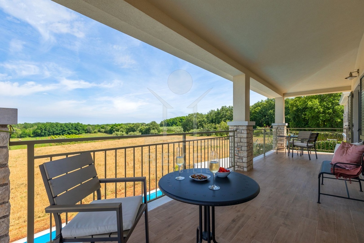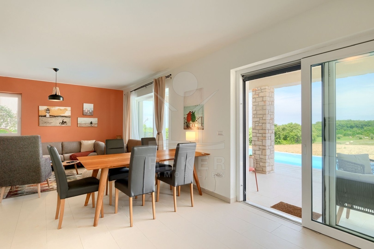 Nur wenige Minuten von Novigrad entfernt, in ruhiger Umgebung und dennoch gut angebunden, steht diese moderne Villa mit weitem Blick auf die Adria und die grüne Landschaft. Hier verbinden sich Gelassenheit und Nähe zu allen wichtigen Einrichtungen. Drei überdachte Stellplätze ermöglichen komfortables Parken direkt vor der Haustür.
