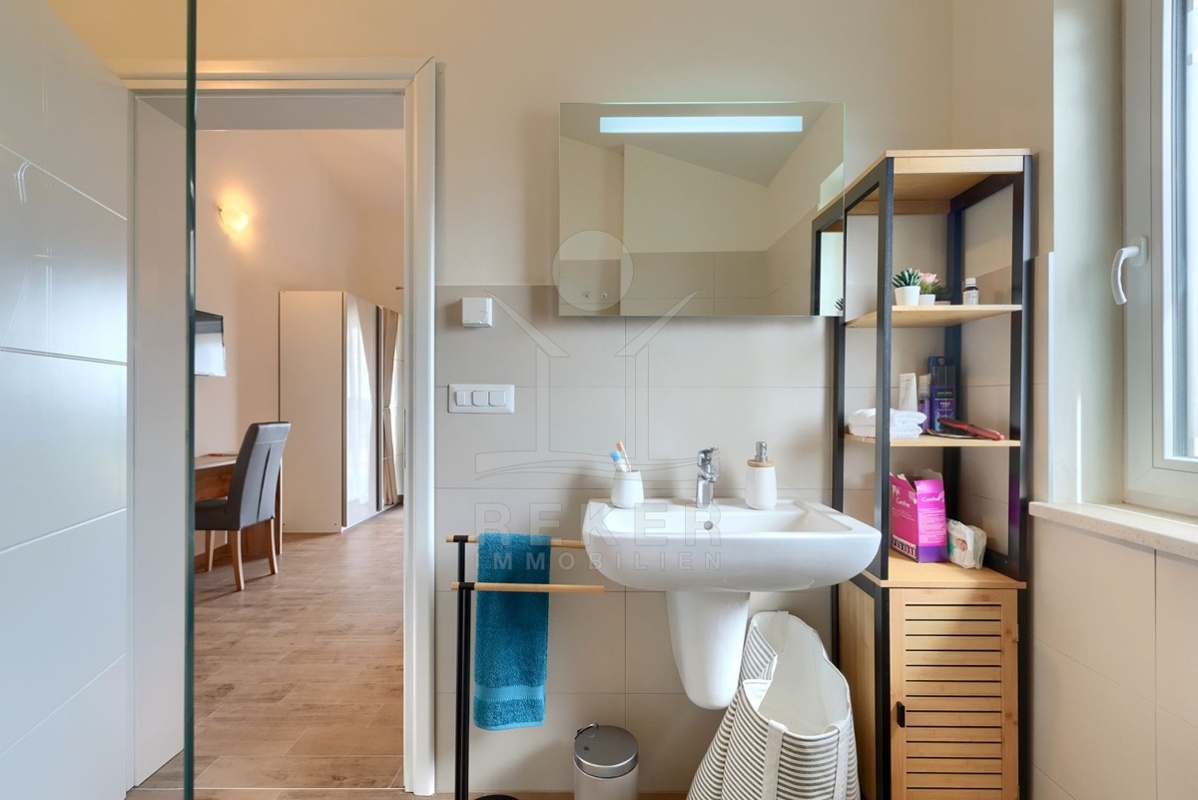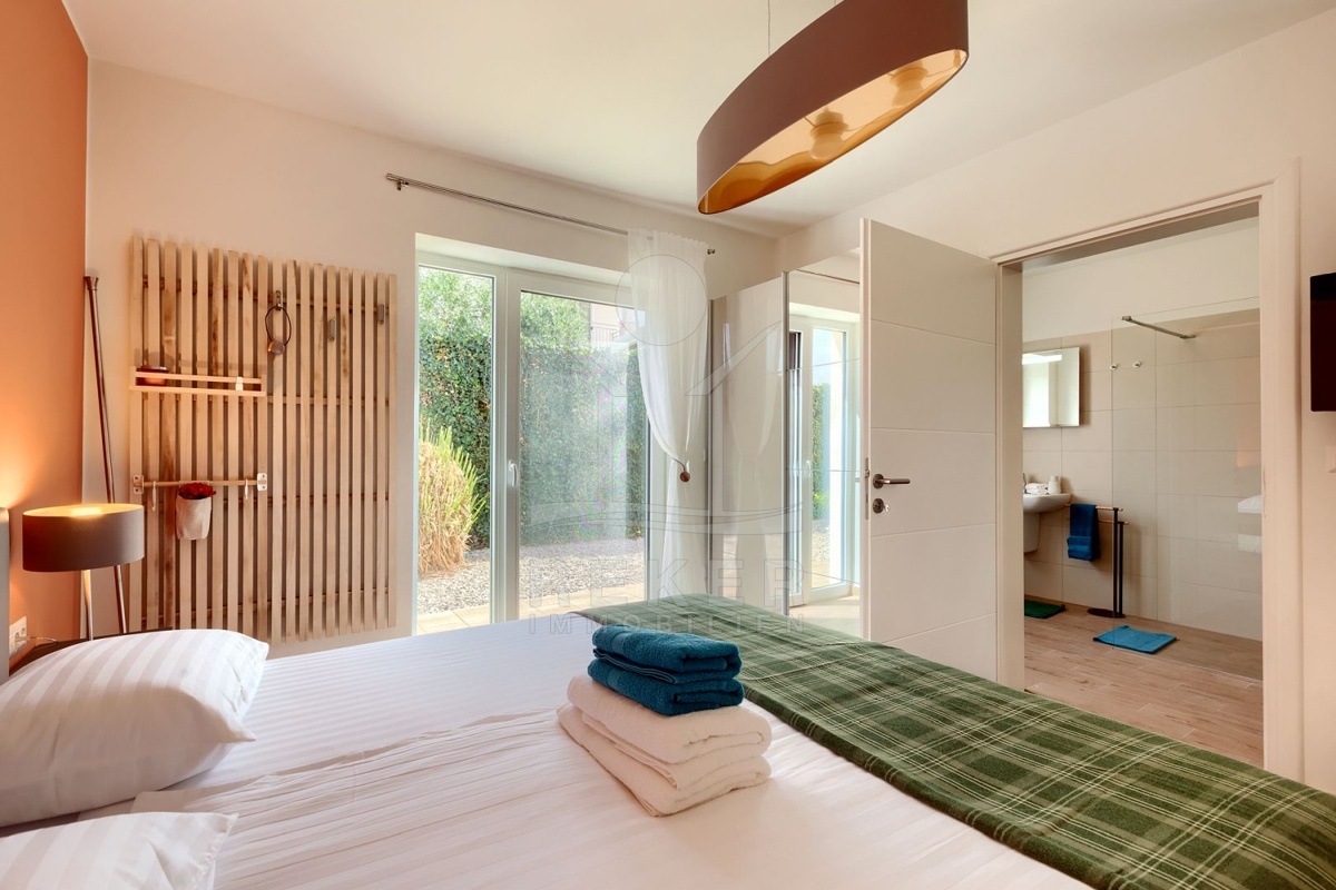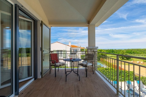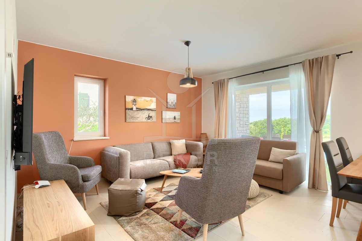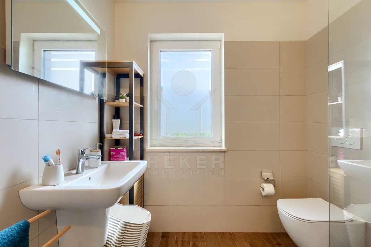 Nur wenige Minuten von Novigrad entfernt, in ruhiger Umgebung und dennoch gut angebunden, steht diese moderne Villa mit weitem Blick auf die Adria und die grüne Landschaft. Hier verbinden sich Gelassenheit und Nähe zu allen wichtigen Einrichtungen. Drei überdachte Stellplätze ermöglichen komfortables Parken direkt vor der Haustür.