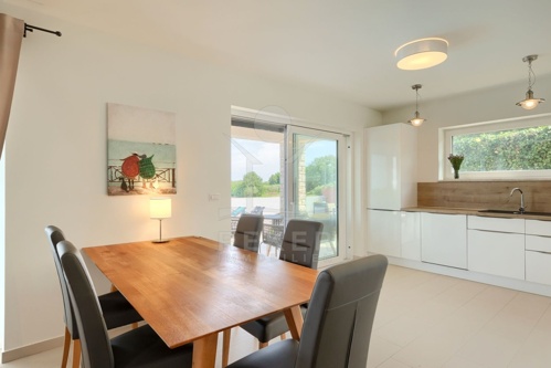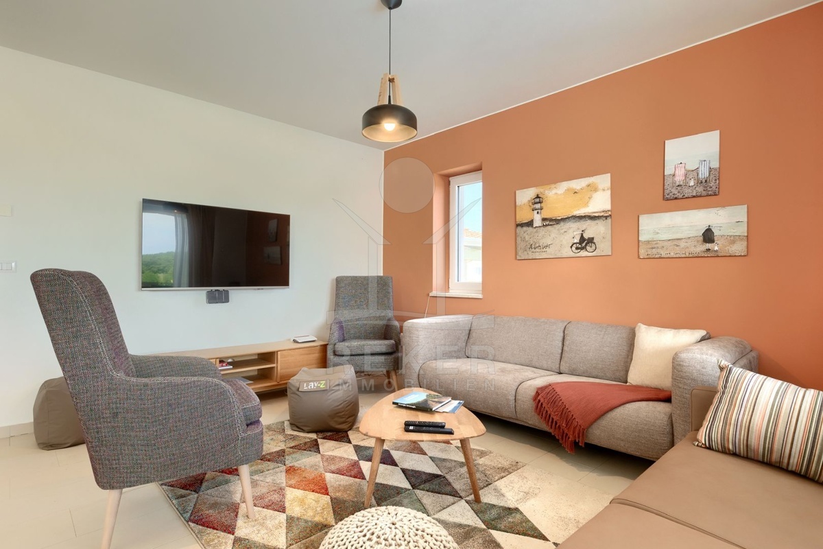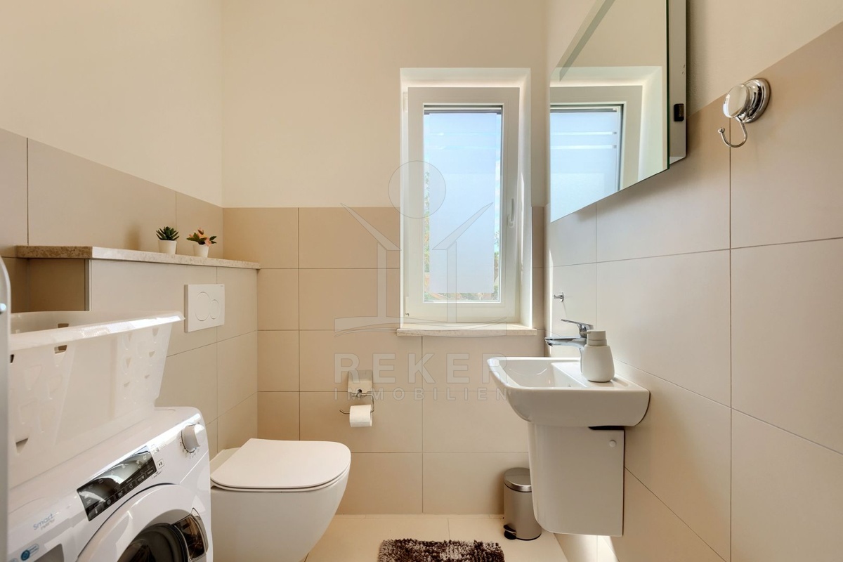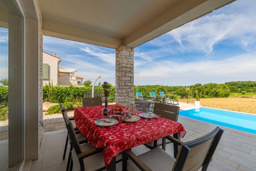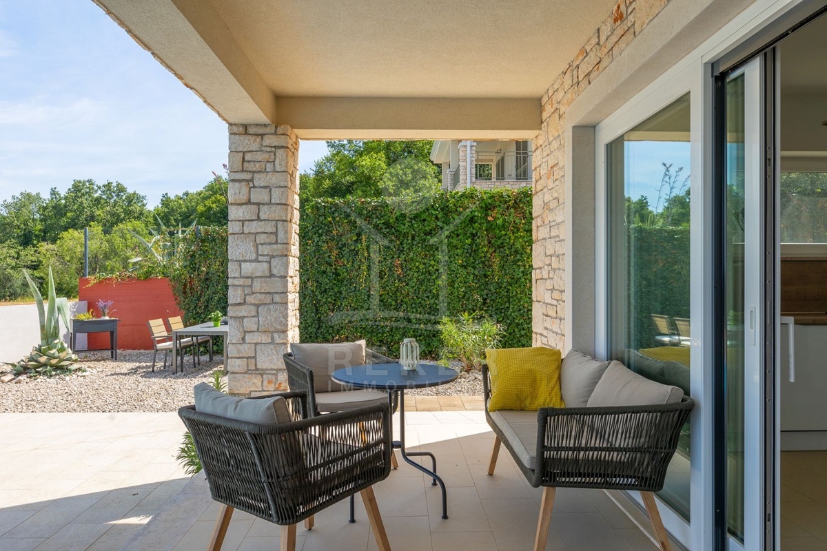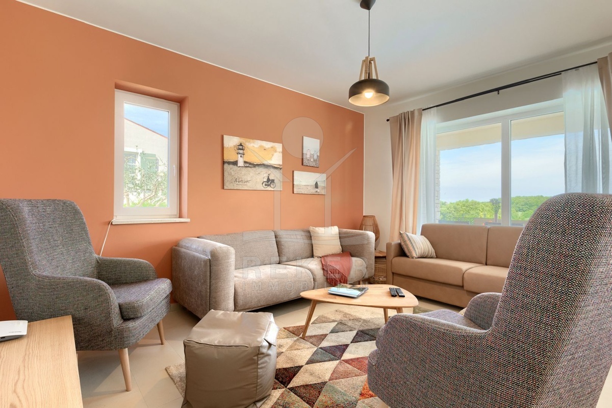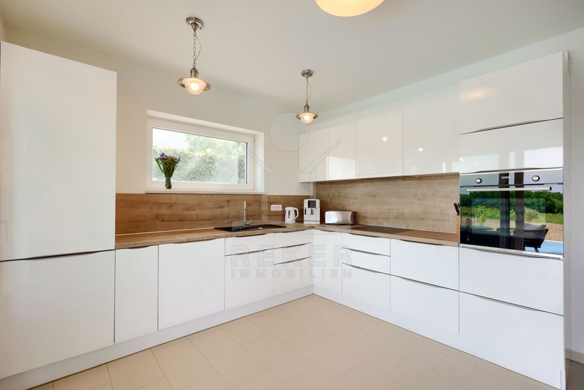 Nur wenige Minuten von Novigrad entfernt, in ruhiger Umgebung und dennoch gut angebunden, steht diese moderne Villa mit weitem Blick auf die Adria und die grüne Landschaft. Hier verbinden sich Gelassenheit und Nähe zu allen wichtigen Einrichtungen. Drei überdachte Stellplätze ermöglichen komfortables Parken direkt vor der Haustür.