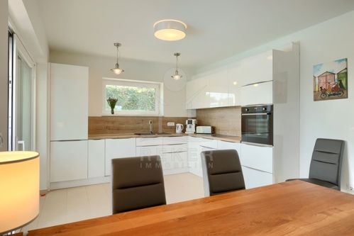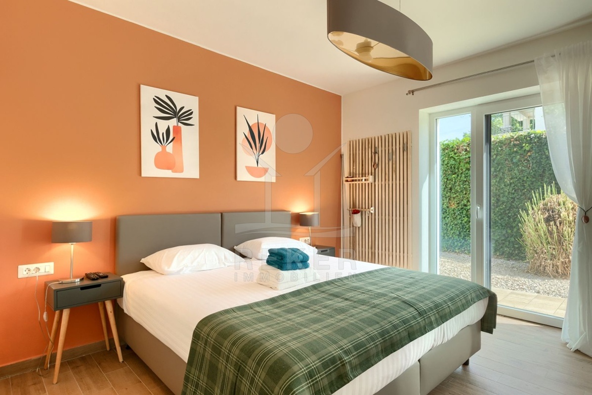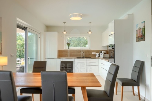 Das 650 m² große Grundstück ist sonnig und gepflegt. Mittelpunkt des Gartens ist der 35 m² große Pool, ideal zum Entspannen oder für gemeinsame Stunden mit Familie und Freunden. Terrasse, Loggia, Balkon und Grillplatz bieten viele Möglichkeiten, den Außenbereich zu genießen. Der barrierefreie Zugang und die geschmackvolle Gestaltung betonen den hohen Wohnkomfort: ein Haus, das Familien ebenso anspricht wie Käufer mit hohen Ansprüchen.