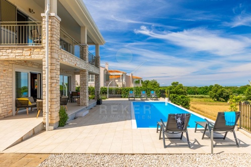 MEDITERRANES WOHNEN AUF HÖCHSTEM NIVEAU: STEINVILLA MIT POOL & MEERBLICK BEI NOVIGRAD