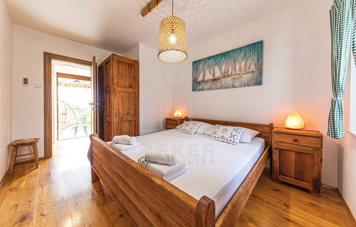 Auf der Westseite der Insel Čiovo, direkt bei Trogir, liegt dieses alte Steinhaus versteckt in den engen Gassen der Altstadt von Okrug. Kein Durchgangsverkehr, kein Lärm … nur das Gefühl, angekommen zu sein. In wenigen Minuten erreichen Sie zu Fuß alles, was Sie brauchen. Strand, Läden, Cafés. Trotzdem bleibt es ruhig. Der perfekte Rückzugsort für alle, die Erholung und kurze Wege schätzen.