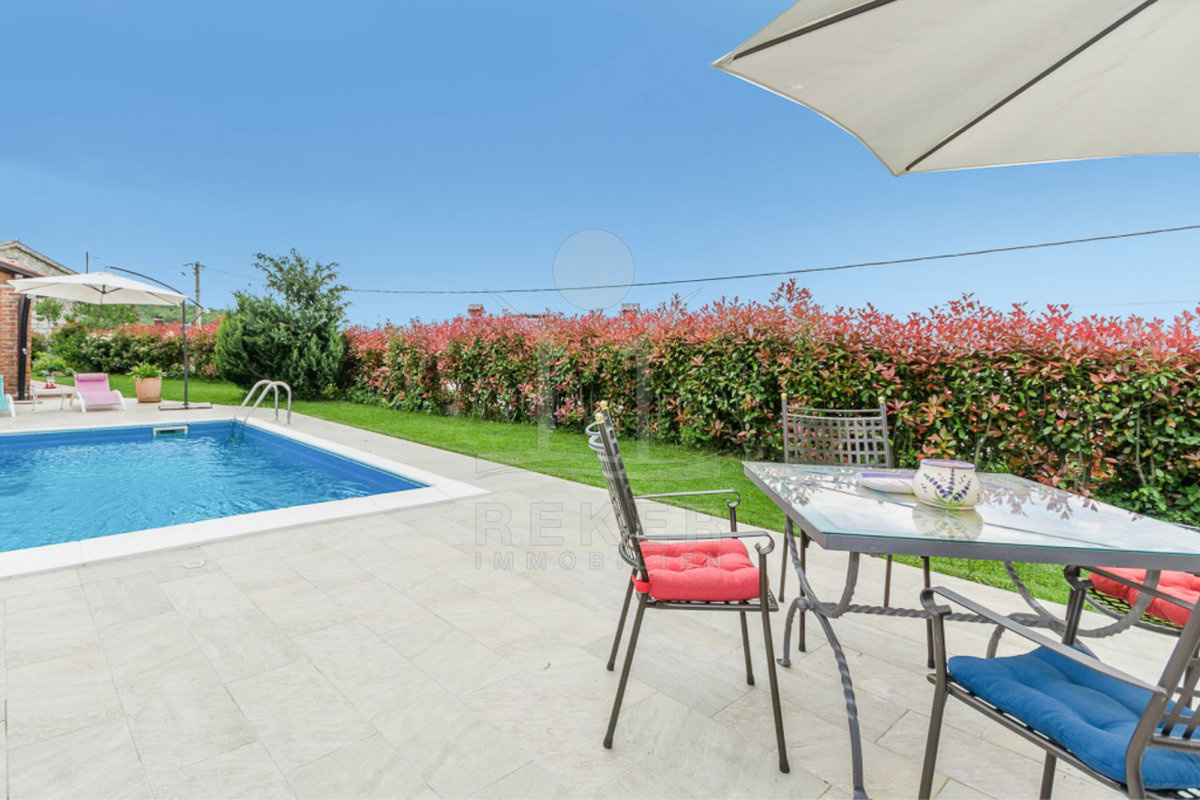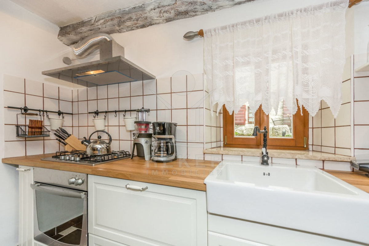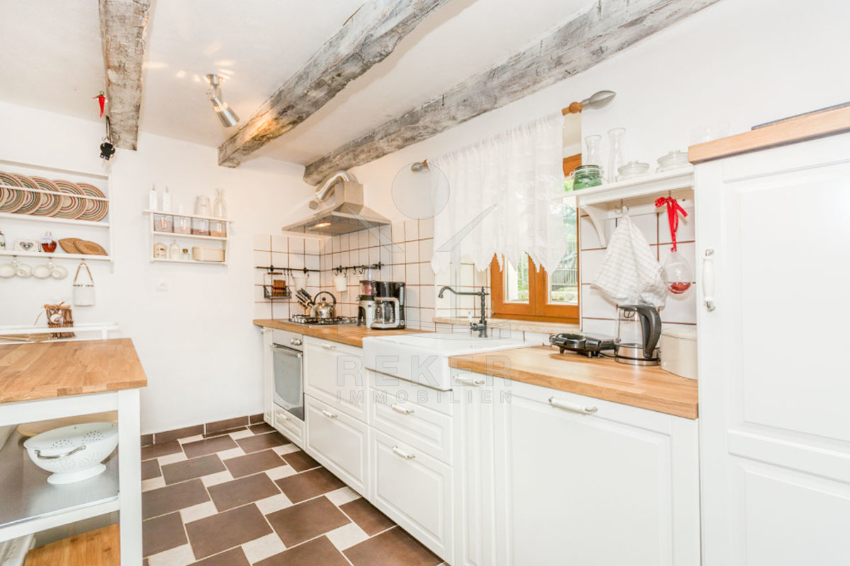 Das bezaubernde Steinhaus bei Opatija liegt in der malerischen Umgebung von Poljane und bietet Ihnen eine wunderbare Rückzugsort. In nur 2,5 km erreichen Sie bequem das Meer und die schönen Strände von Ičići, die für ihre hervorragende Ausstattung und die blaue Fahne bekannt sind. Die reizvolle Küstenlinie und die beeindruckende Uferpromenade Lungomare laden zu erholsamen Spaziergängen ein, während die umliegenden Wanderwege im Učka-Gebirge ein Paradies für Natur- und Sportliebhaber sind. Die ruhige Lage des Hauses, umgeben von viel Grün, schafft eine friedliche Atmosphäre, fernab vom Massentourismus. Gleichzeitig wohnen Sie in der Nähe des belebten Ferienortes Opatija, der Ihnen eine Fülle von kulturellen Sehenswürdigkeiten, schönen Villen und herrlichen Parkanlagen bietet. Mit einer idealen Anbindung zum Flughafen Rijeka, der sich nur 44,5 km entfernt befindet, ist dies der perfekte Ort, um das ganze Jahr über das milde mediterrane Klima und die Schönheit der Kvarner Bucht zu genießen.