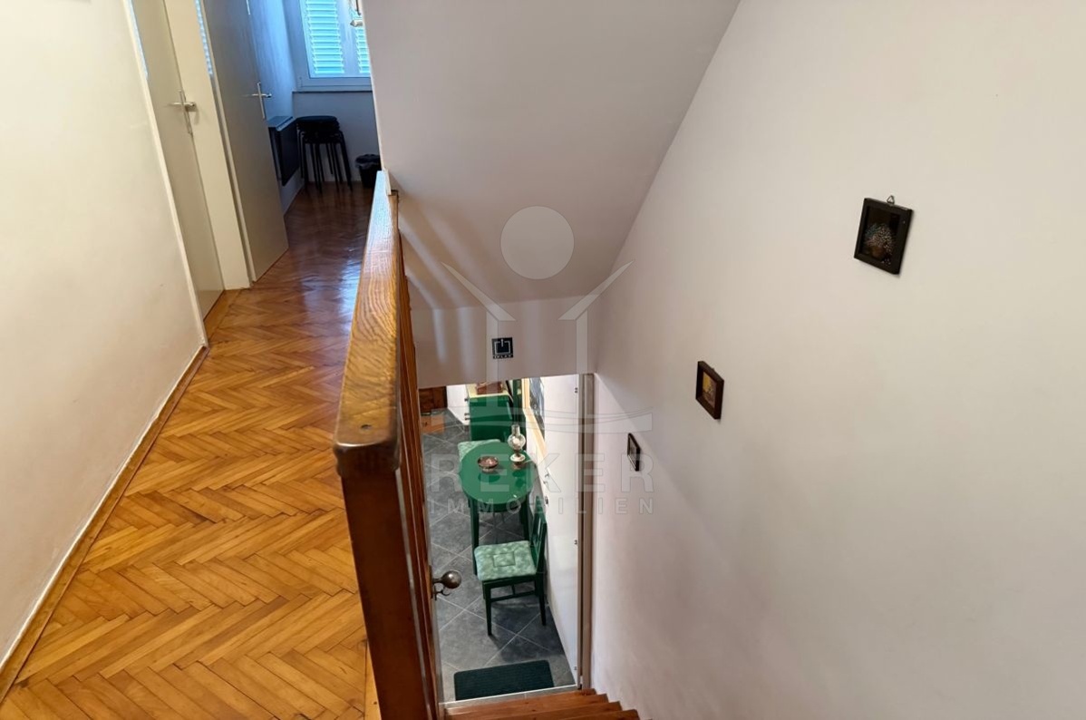 Im Erdgeschoss: Ein heller Wohnbereich mit offener Küche, zwei Schlafzimmer, Bad und Flur. Oben: nochmals zwei Schlafzimmer, Bad und eine zweite Küche – ideal für große Familien oder zur Teilvermietung. Der Balkon im Obergeschoss bietet Ihnen freien Blick aufs Meer. Dazu kommt ein Dachboden, der aktuell nicht ausgebaut ist – aber Potenzial hat. Klimaanlage sorgt an heißen Tagen für angenehme Temperaturen. Ein Haus mit Geschichte, 1914 erbaut, 2010 renoviert – und bereit für neue Kapitel.