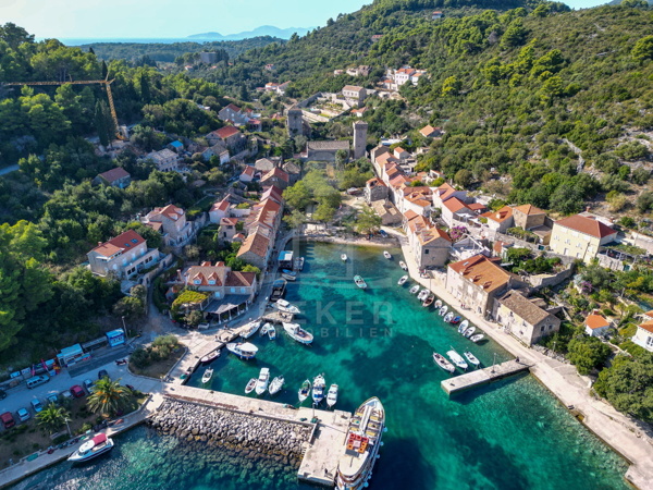 Die atemberaubende historische Steinhausvilla liegt auf der bezaubernden Insel Šipan, nur 30 Meter vom Meer entfernt. Šipan ist die größte Insel des Elaphiten-Archipels in der Region Dalmatien und ein Ort von außergewöhnlicher Schönheit, reich an Geschichte und kulturellem Erbe. Die Insel ist bekannt für ihren hervorragenden Weinanbau und ihr erstklassiges Olivenöl. Mit malerischen Stränden, kristallklarem Wasser und einer beeindruckenden Naturlandschaft war Šipan schon immer ein Rückzugsort für Adelige und die Aristokratie Dubrovniks. Die Insel fasziniert mit reicher Kultur, mediterraner Vegetation und einer entspannten Atmosphäre. Ein Ort, der Ruhe und Erholung verspricht und seine Besucher mit meditativer Stille entzückt. Erleben Sie die einzigartige Atmosphäre von Šipan und tauchen Sie ein in die Geschichte und Schönheit dieser bezaubernden Insel.