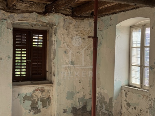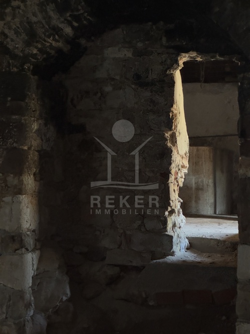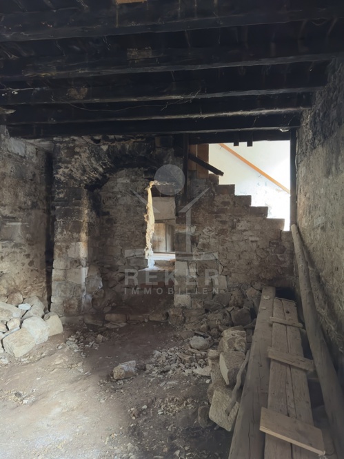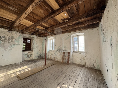 Im Haus selbst steckt Charakter – und Potenzial. Drei Etagen, rund 400 m² Fläche. Im Erdgeschoss: ein Gewölberaum mit Geschichte. Und mit über drei Meter hohen Decken. Die traditionelle Konoba ist eines der Highlights dieses Hauses – rustikal, roh, stimmungsvoll. Alte Tröge, grobe Steinwände, ein gemauerter Ofen. Das Erdgeschoss ist perfekt für Weinlager, Ausstellungen, Feste oder einfach als starke Basis für das, was Sie daraus machen wollen. Im ersten Stock: große Räume mit viel Licht. Der Boden: echtes Holz. Die Balkendecke: sichtbar, stabil, ehrlich. Hier entsteht ein Wohnraum, der Geschichten erzählt. Und oben, unterm Dach? Kleine Fenster, viel Luft nach oben. Ausbaureserve für kreative Pläne.