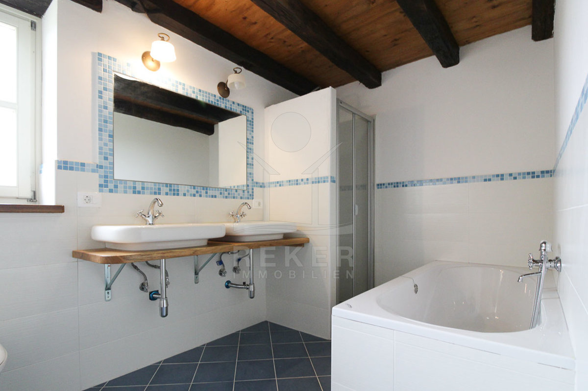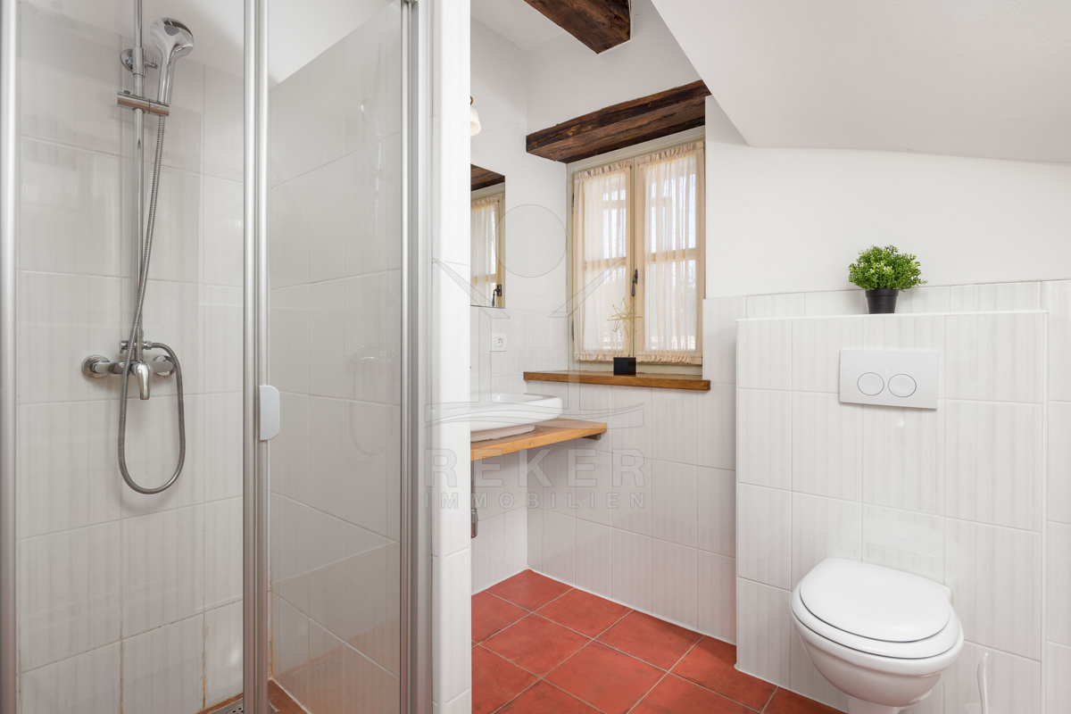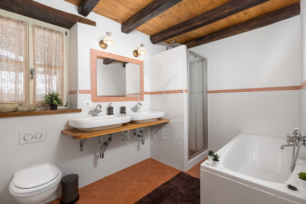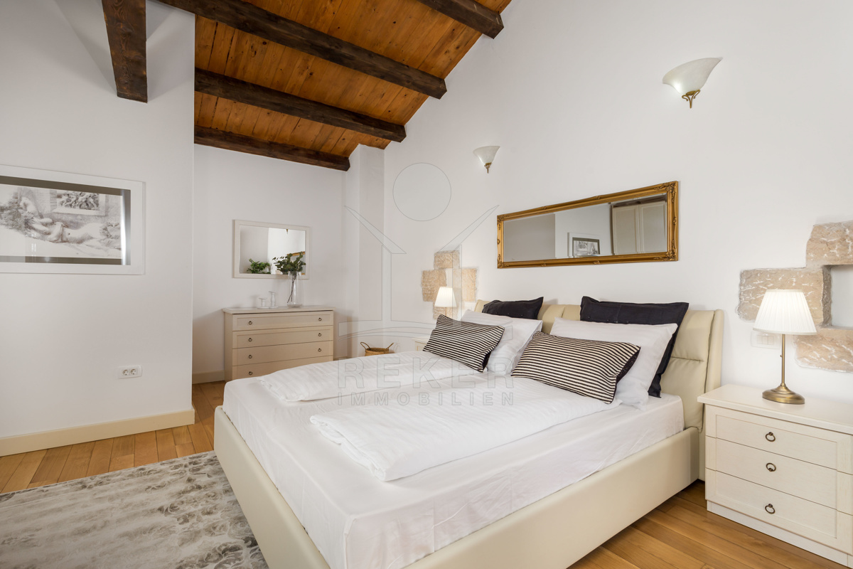 Drei helle und romantische Schlafzimmer biete die Steinvilla auf dieser Ebene, zudem verfügt jedes Zimmer über ein eigenes vollausgestattetes Bad und einem malerischen Ausblick in den Garten.