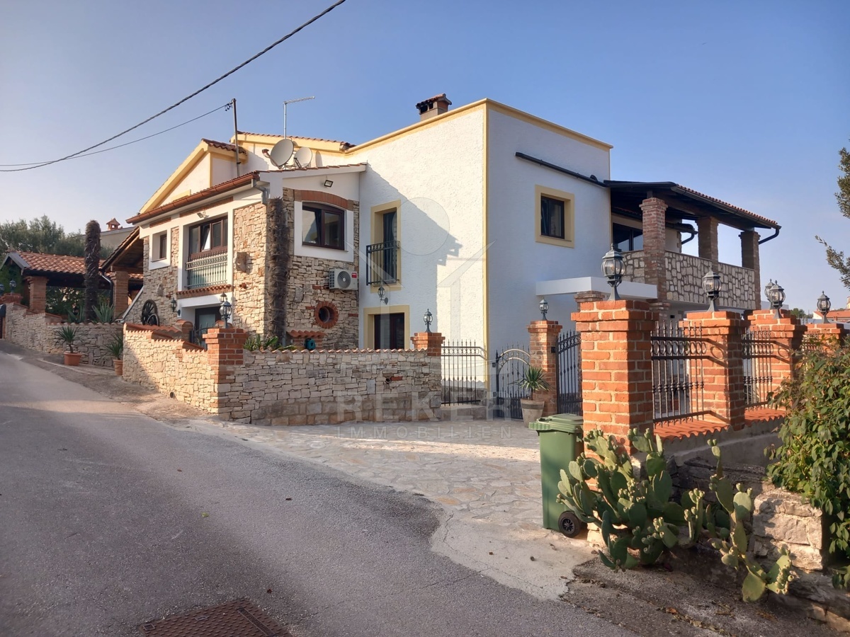 Das Anwesen befindet sich auf einem großzügigen Grundstück von 1.500 m². Das Haus bietet ein schönes Ambiente bestehend aus einem renovierten alten Steinhaus und einer neueren Anbauversion, die jedoch im authentischen istrischen Stil gehalten ist. Mit einer Anpassung im Jahr 2019 bietet dieses Mehrfamilienhaus modernen Komfort in einer charmanten, mediterranen Umgebung. Die Immobilie befindet sich in einer Hanglage und ist von einer Steinmauer umrahmt, was zusätzliche Privatsphäre und Charme bietet.