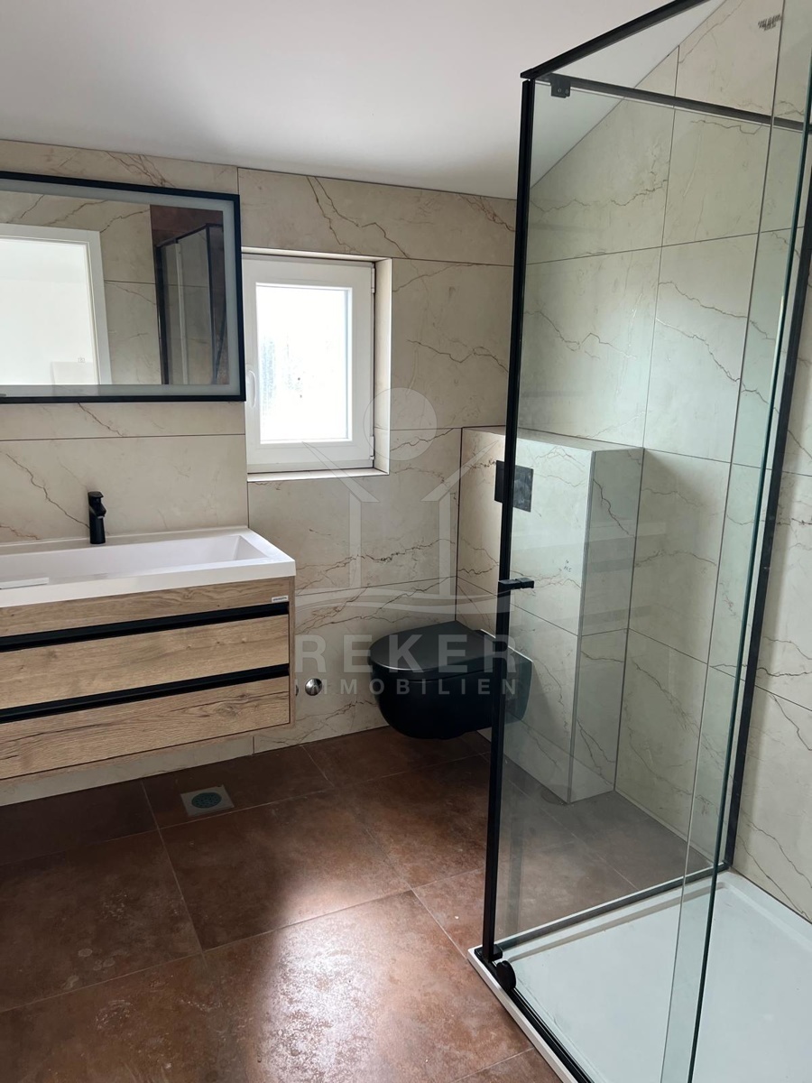 Das moderne Neubau Steinhaus in Vrsi bei Nin ist von der natürlichen Schönheit Dalmatiens umgeben und bietet eine einzigartig friedliche Umgebung. Die Idylle der Olivenhaine und Pinienwälder schafft eine entspannte Atmosphäre für Naturliebhaber und Kulturinteressierte gleichermaßen. Mit der kurzen Entfernung zu den historischen Städten Zadar und Nin sind Ausflüge in die reiche Geschichte der Region leicht erreichbar. Die Region Vrsi besticht zudem durch die malerischen Küstenlandschaften mit ihren versteckten Buchten und kristallklarem Wasser, ideal zum Schwimmen und Schnorcheln. Wander- und Radwege führen durch die atemberaubende Natur und zu historischen Sehenswürdigkeiten. Die kulinarischen Highlights der dalmatinischen Küche runden das Urlaubserlebnis perfekt ab. Dieses Neubau Steinhaus bietet eine ruhige, ländliche Lage mit einer guten Anbindung an die umliegenden Sehenswürdigkeiten und die entspannten Strände, die zu unvergesslichen Erlebnissen am Meer einladen.