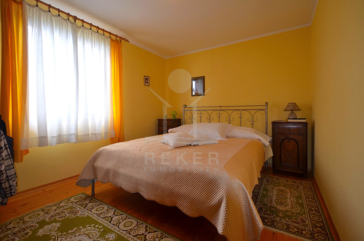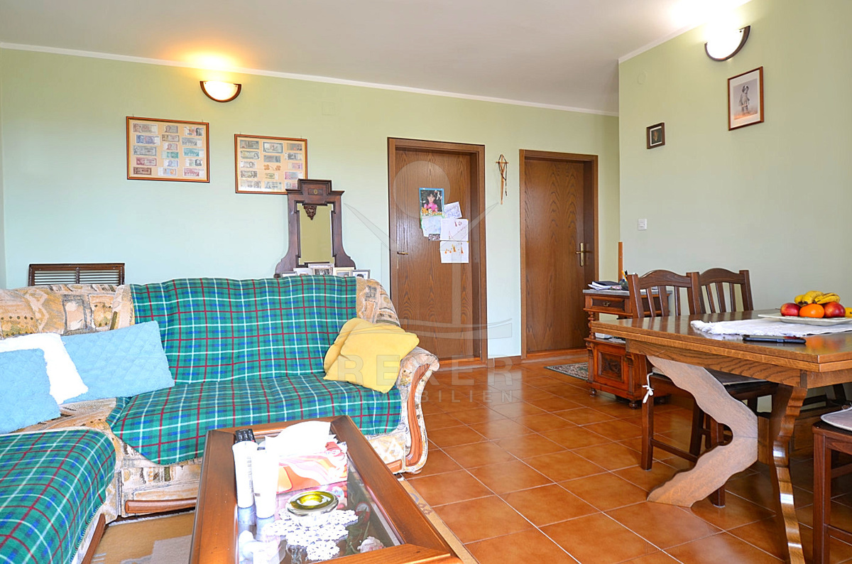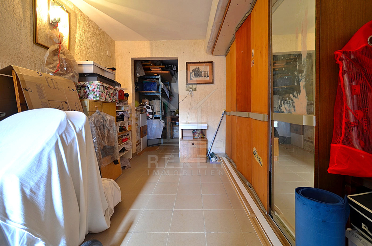 Im Obergeschoss erwartet Sie eine 70 m² große Wohnung, die aus einem Wohnzimmer mit halboffener Küche und Essplatz, 2 Schlafzimmern und einem Badezimmer besteht. Dank der Klimaanlage, der Zentralheizung und des Kamins können Sie sich ganzjährig auf ein optimal temperiertes Wohn-Erlebnis freuen.