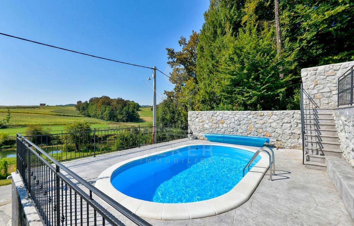 Zadobarje, ein charmantes Dorf nur 9,6 km von Karlovac entfernt: Hier steht ein liebevoll renoviertes Steinhaus mit Blick auf die Dobra. Ruhe, Natur und Komfort gehen hier Hand in Hand. Über eine asphaltierte Straße ist das Anwesen das ganze Jahr über gut erreichbar, gleichzeitig genießen Sie eine grüne, friedliche Umgebung.