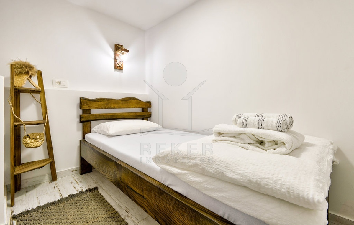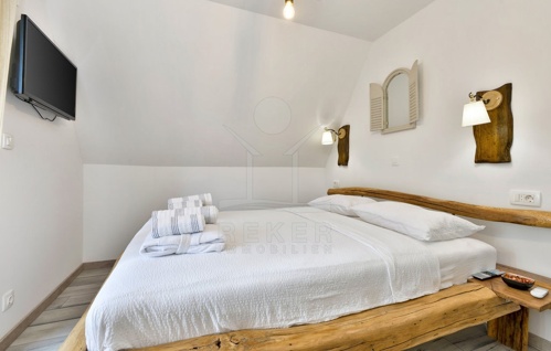 Zur Ausstattung zählen Pellet-Ofen, Klimaanlage, dreifach verglaste Fenster, elektrische Warmwasserbereitung und ein Holztreppenaufgang mit schmiedeeisernem Geländer. Strom, Wasser und Internet sind vorhanden. Mit allen Genehmigungen und der kompletten Renovierung ist das Haus sofort bezugsfertig, auch für die touristische Nutzung.