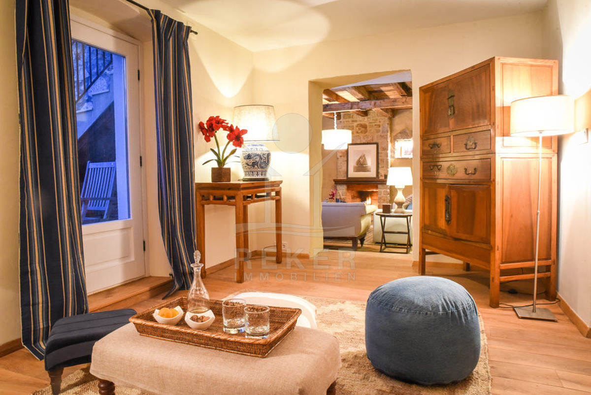 Das beeindruckende Anwesen erstreckt sich über ein 1000 m² großes Grundstück, das von einer traditionellen Steinmauer umgeben ist, die für eine hohe Privatsphäre sorgt. Das Anwesen ist liebevoll von mediterranen Pflanzen und Bäumen umgeben und bietet ein harmonisches, ruhiges Umfeld. Mit 240 m² Wohnfläche verteilen sich die 3 Etagen auf einen Komplex aus renovierten Steinhäusern und schaffen so ein Gefühl von Charakter und Geschichte. Ein Parkplatz ist ebenfalls vorhanden und ergänzt die praktische Nutzung des Hauses.